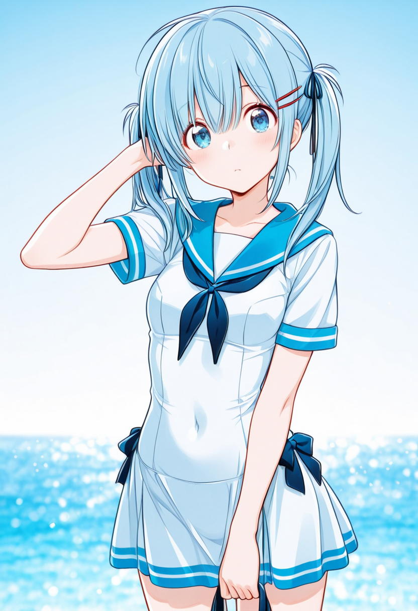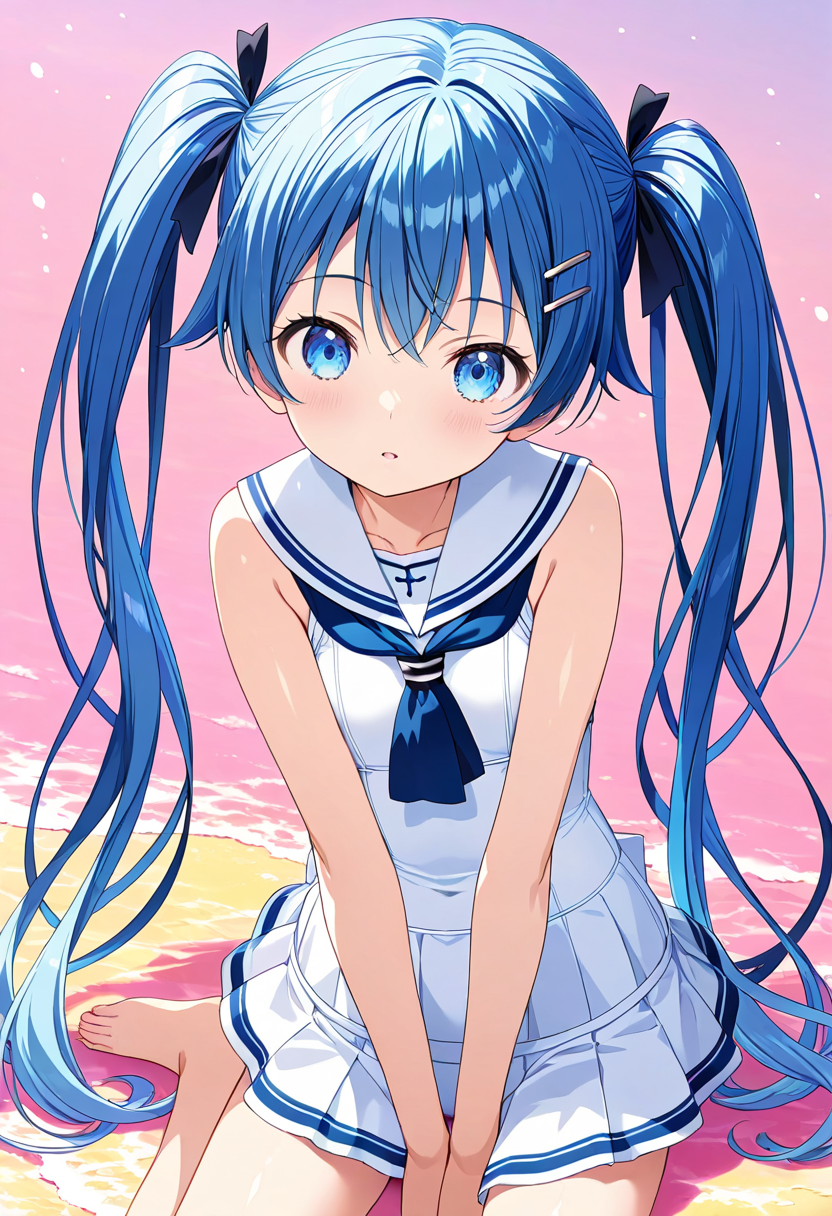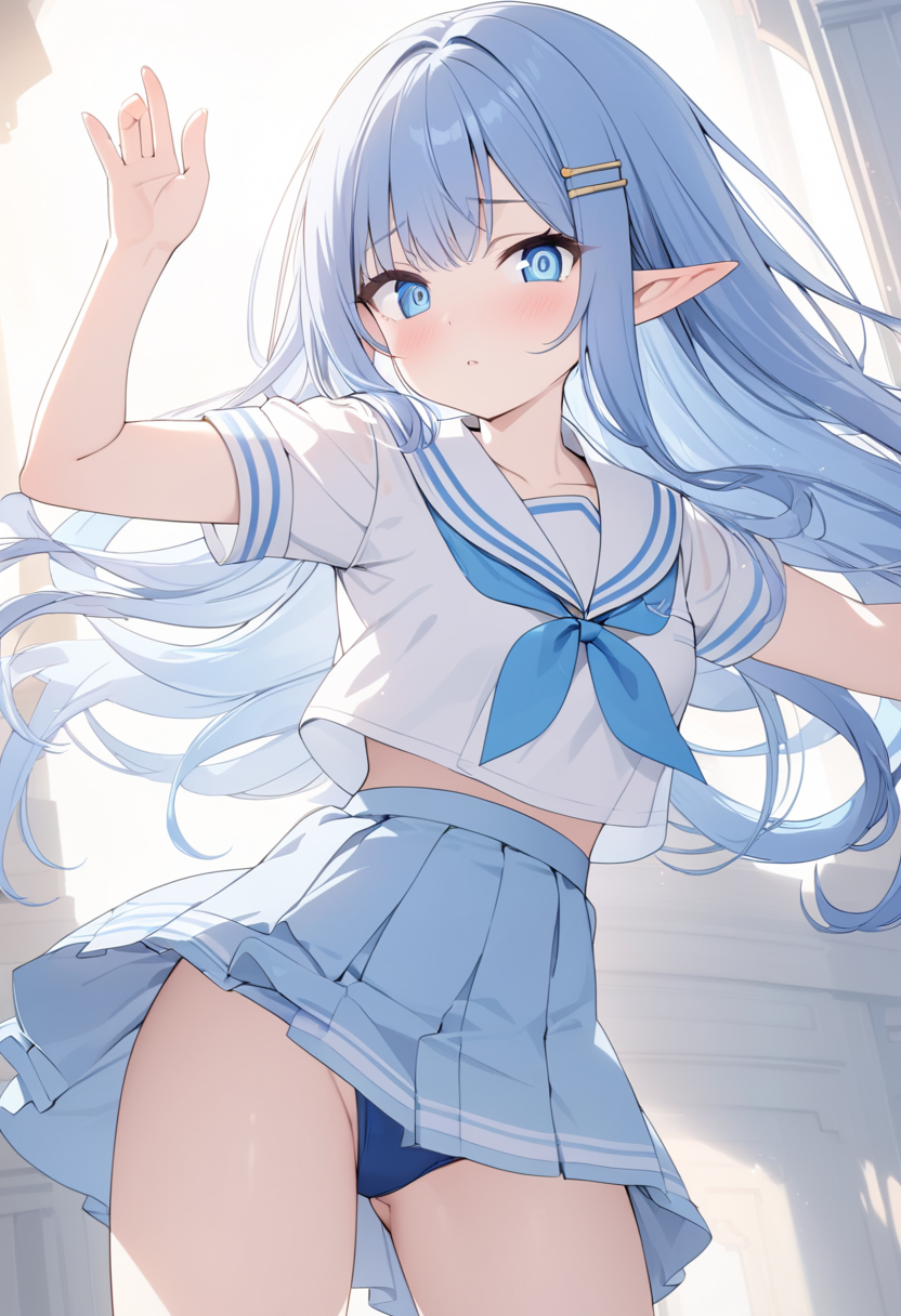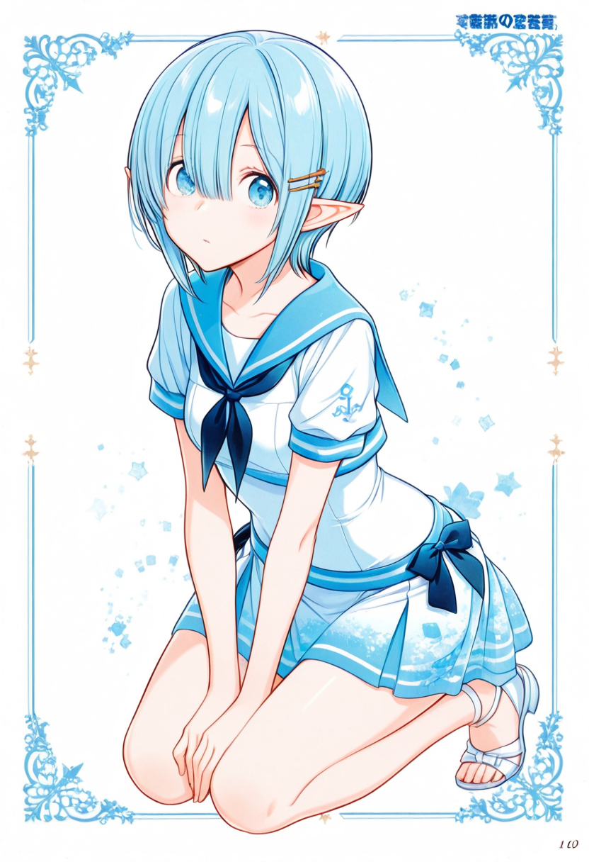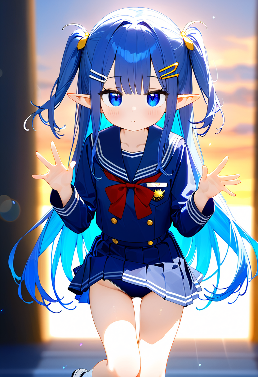 Blue-Haired Elf Waiting by the Lakeside at Dusk