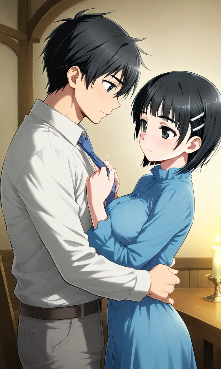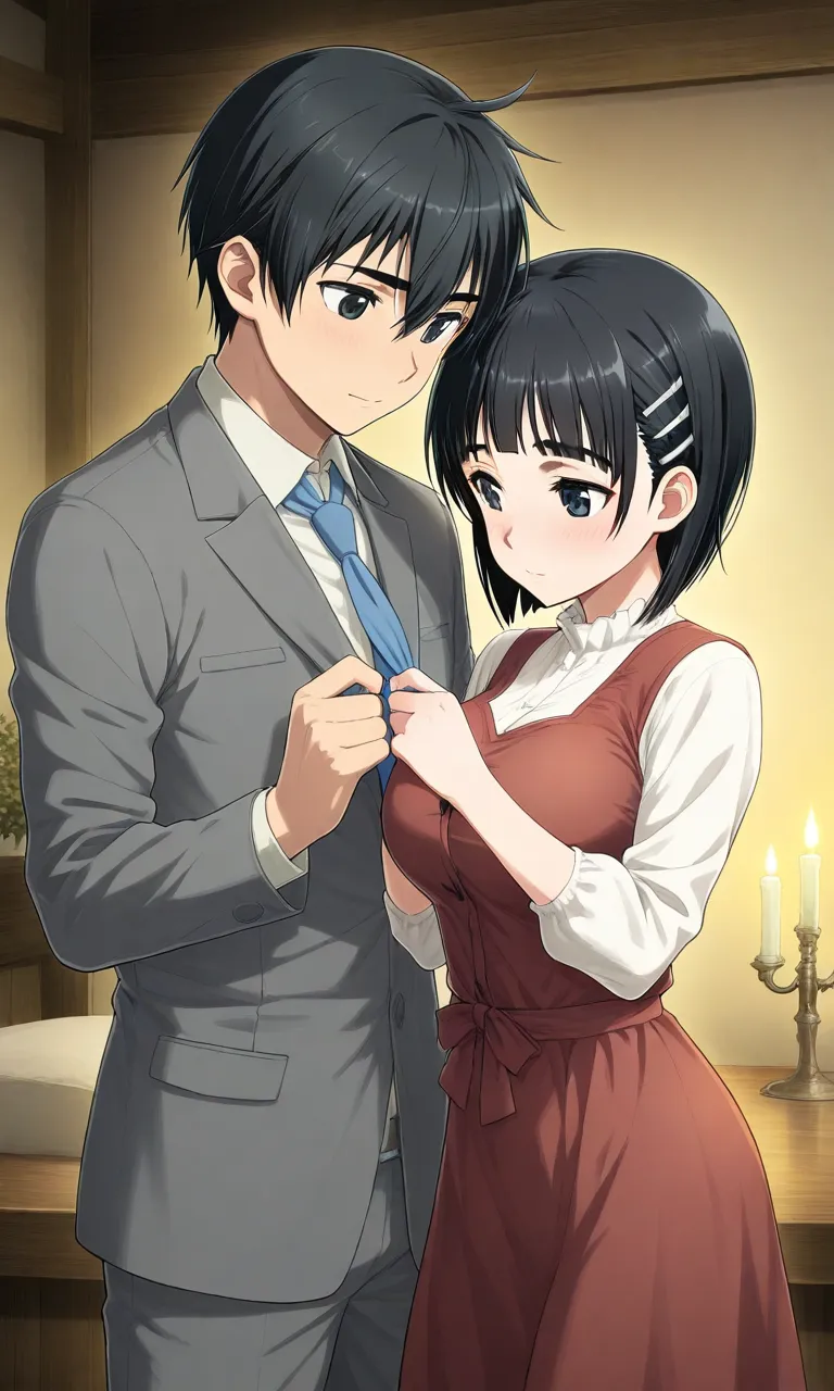 Gentle Moment Fixing the Tie