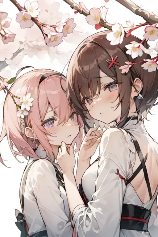 Weeping cherry tree and double cherry tree (personification)