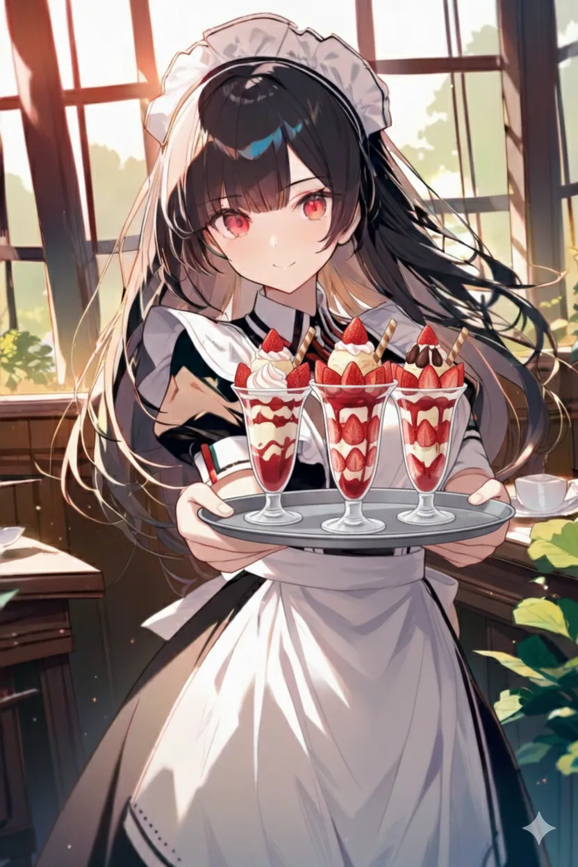 8枚目:メイド鬼「お待たせしました。苺サンデーでございます♪」
