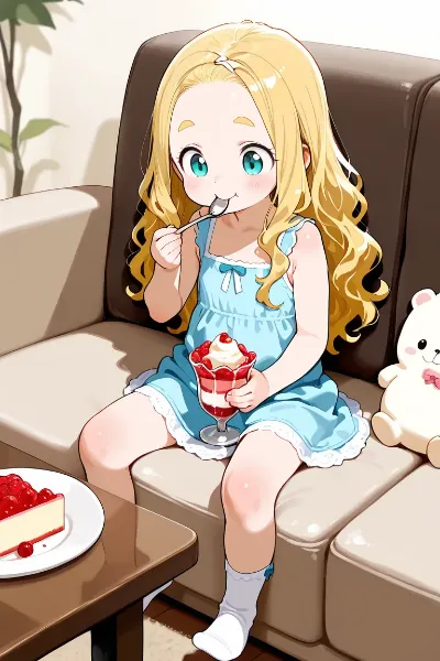 今日も喫茶店でバイトをするメイド鬼のところにJSトリオがやってきました。遊んでいて近くまできたようで寄ってみたようです。彼女達は苺サンデーを頼んで堪能するのでした