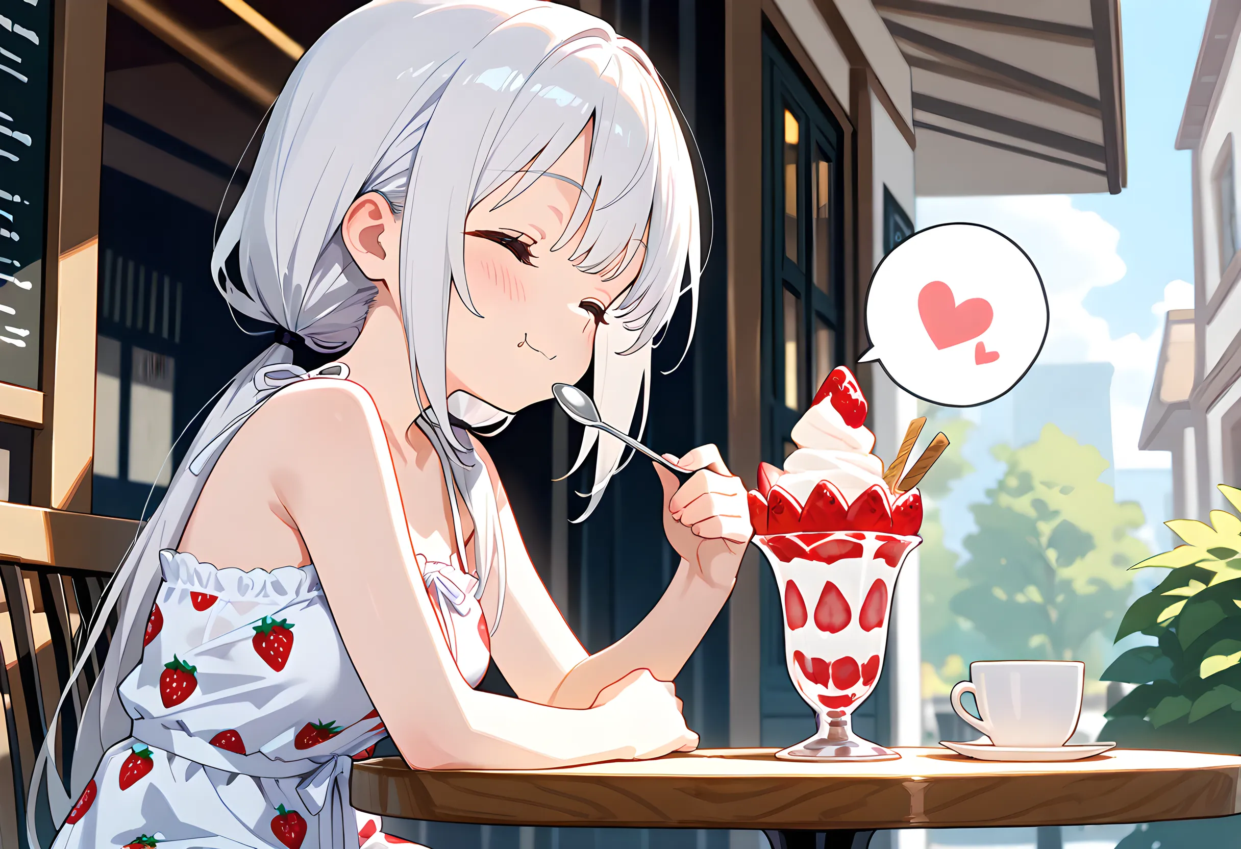 バストサイズのプロンプトは変えてないのですが、恐らく前かがみであることで大きく見えているのでしょう。重力の力ですねw もしくは、ちょっとずつ成長してるのかも・・・?