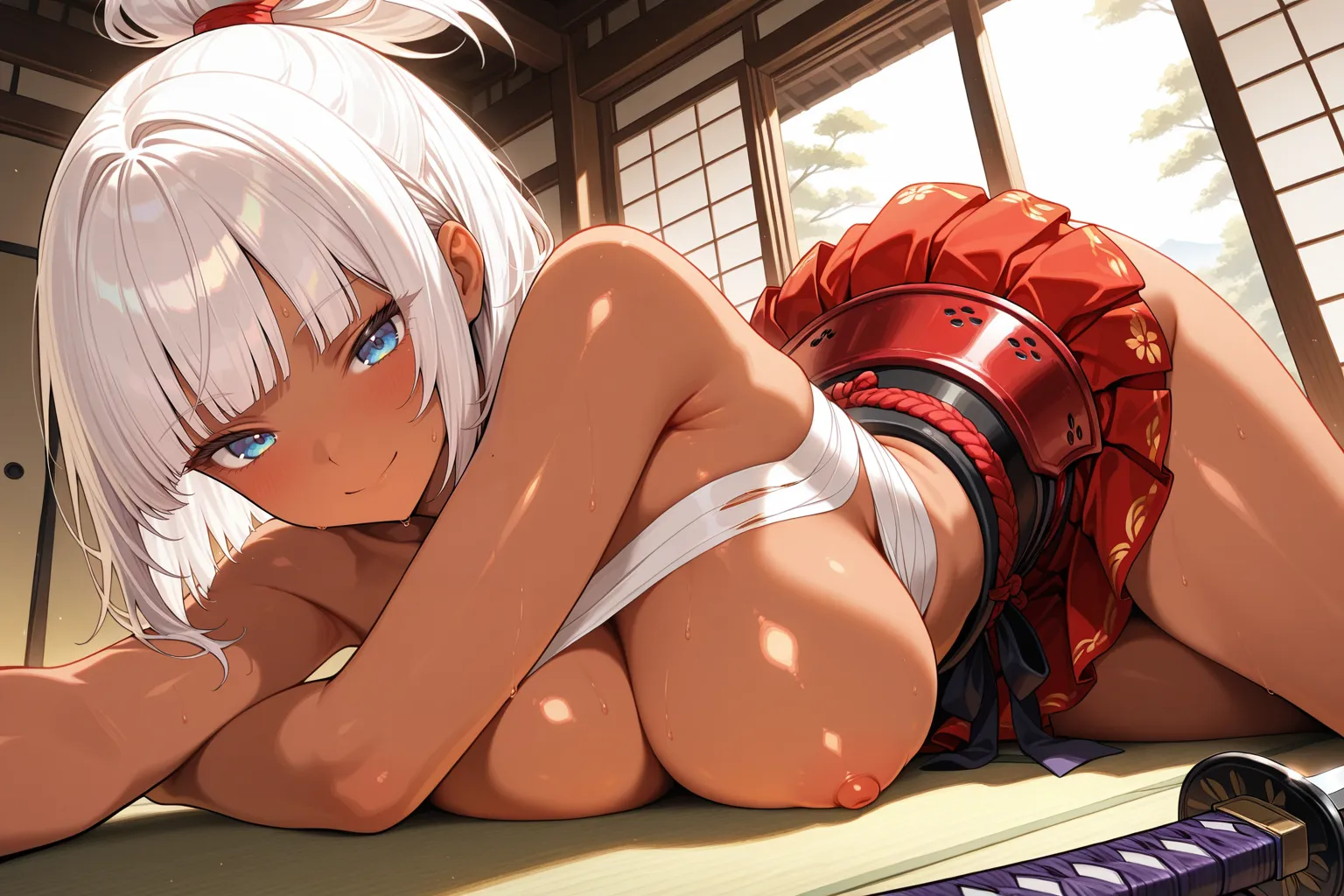 男装の爆乳女侍に、夢中になってません?