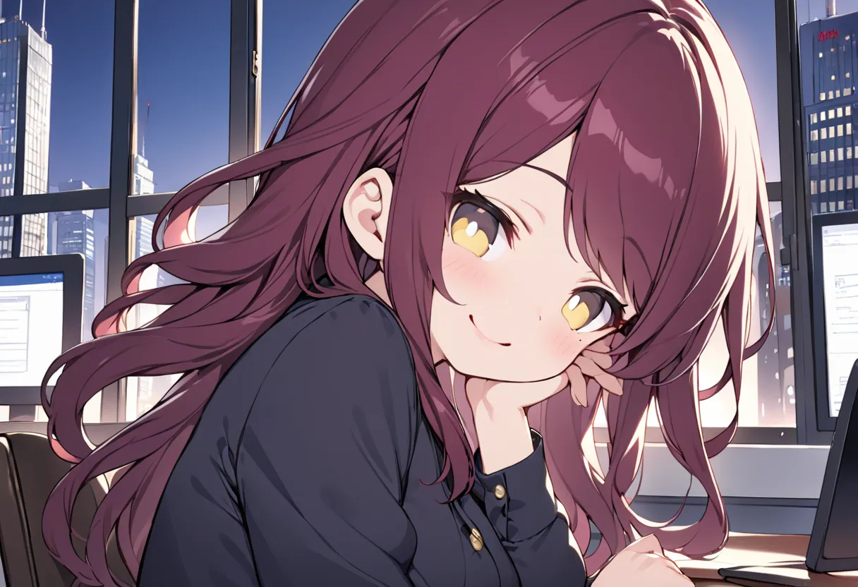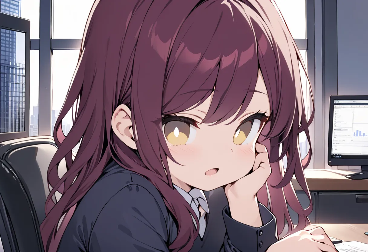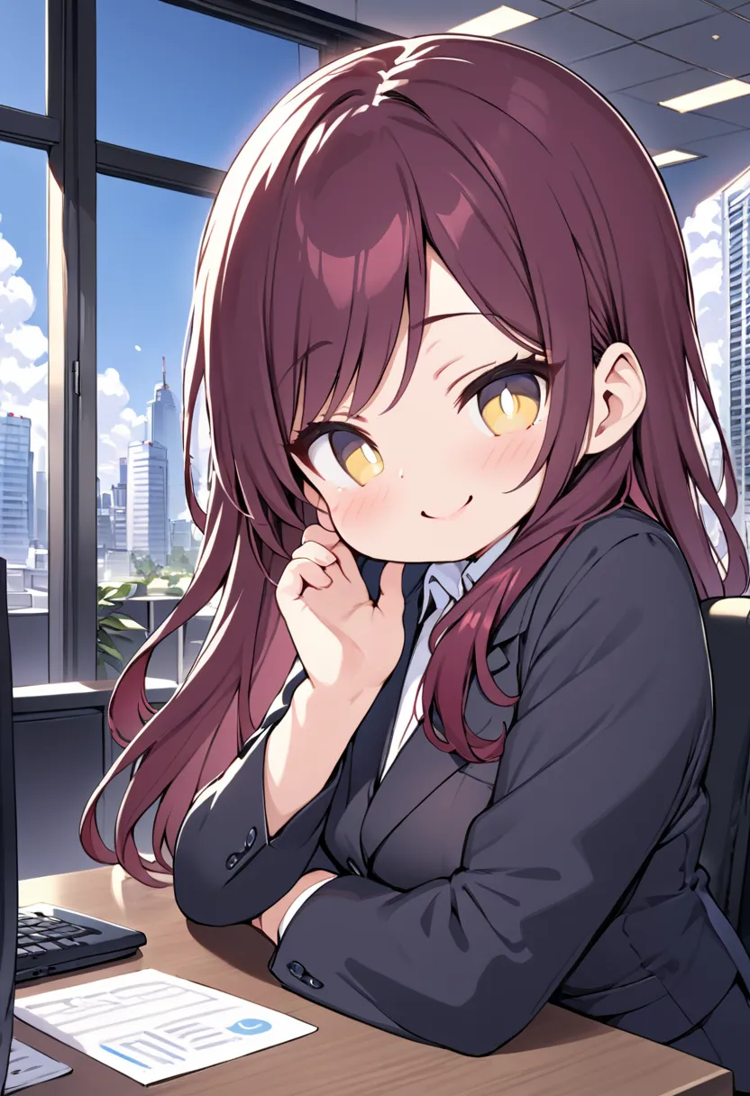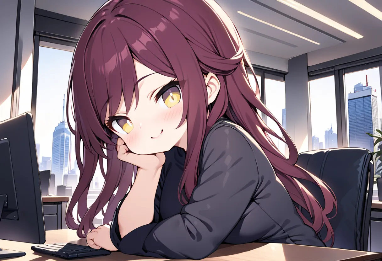 Gentle Call Girl in the High-Rise Office