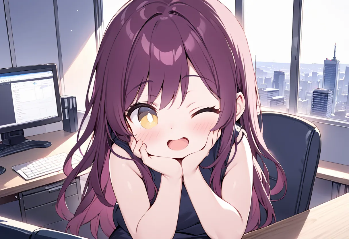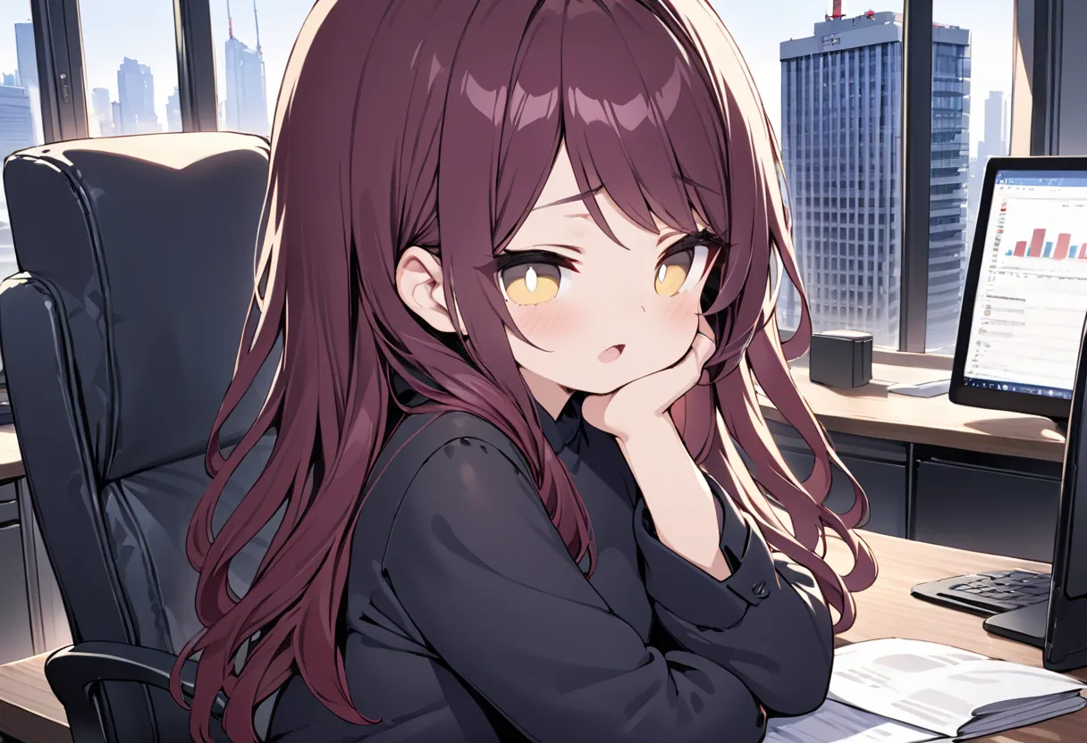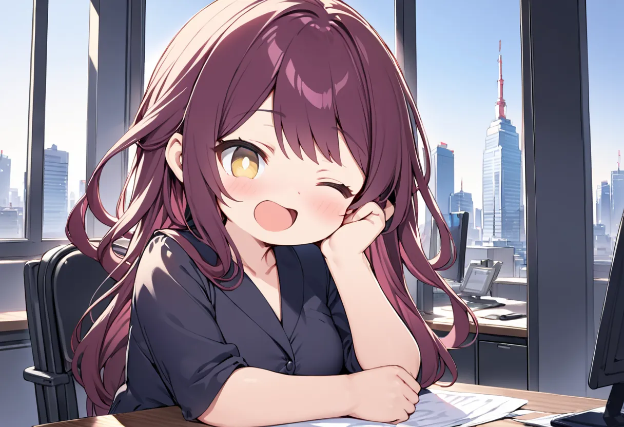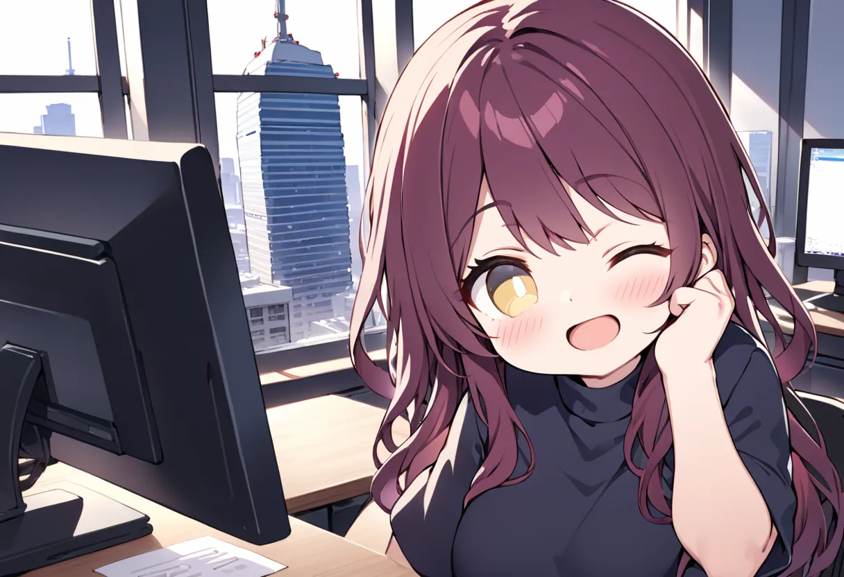 Gentle Call Girl in the High-Rise Office