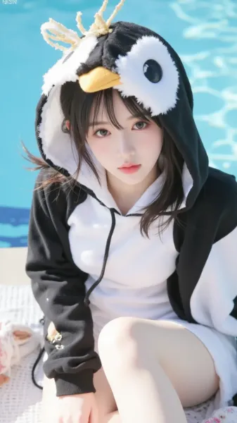Penguin Girl by the Poolside