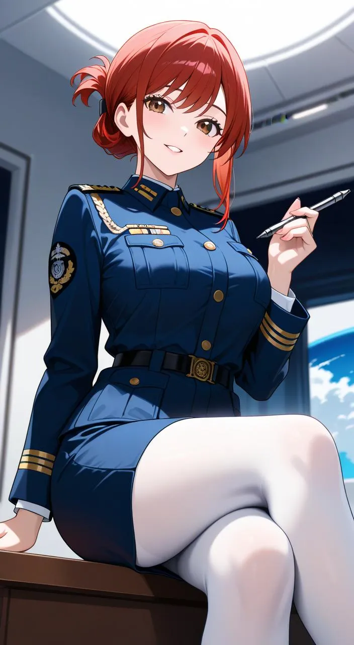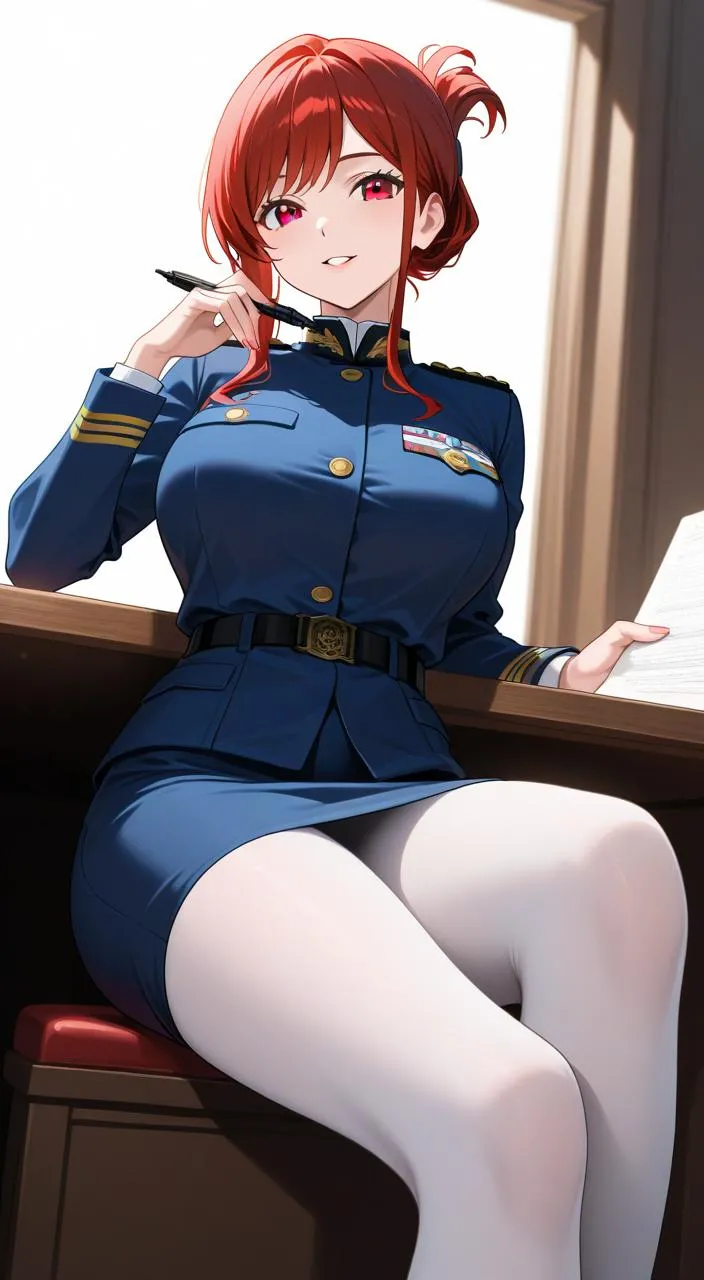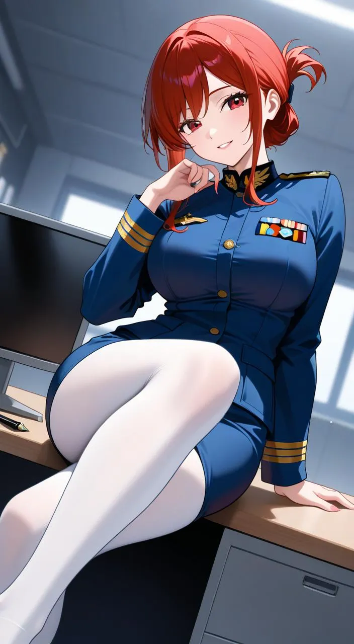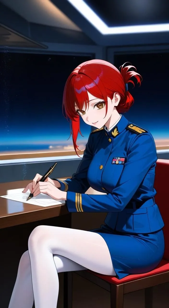 Red-Haired Soldier in Night Office