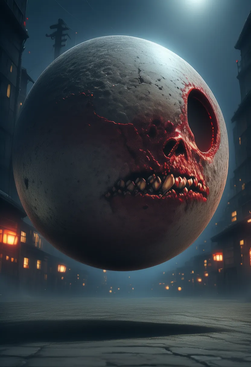 Description: ai-generated, ultra-detailed, best illustration, best quality, very aesthetic,, 1.5::location night ::, 1.5::monster, phantom,ball:: zombie,no human, -1.5::photorealistic::