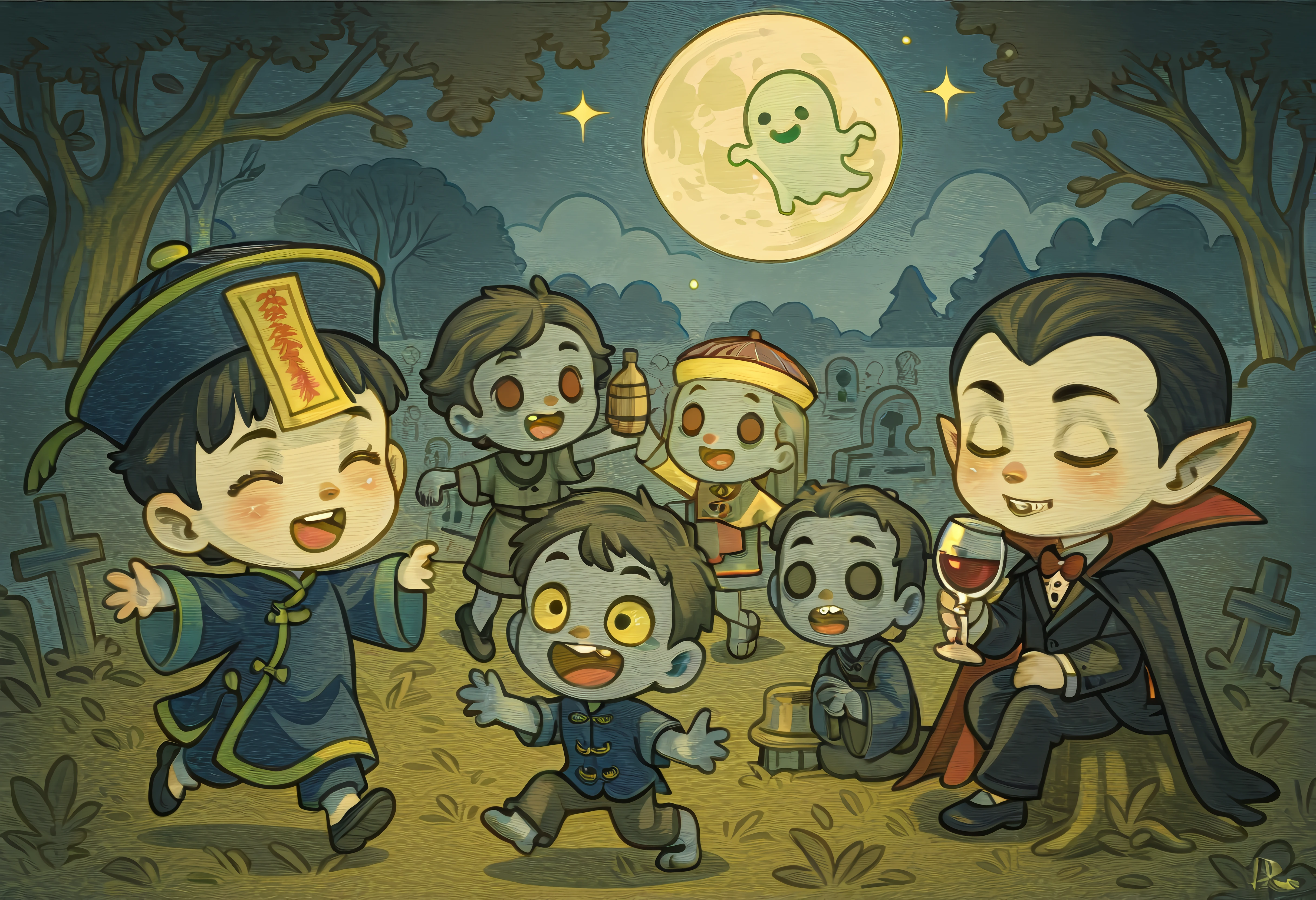 キョンシーに仮装するゾンビたちのパーティ