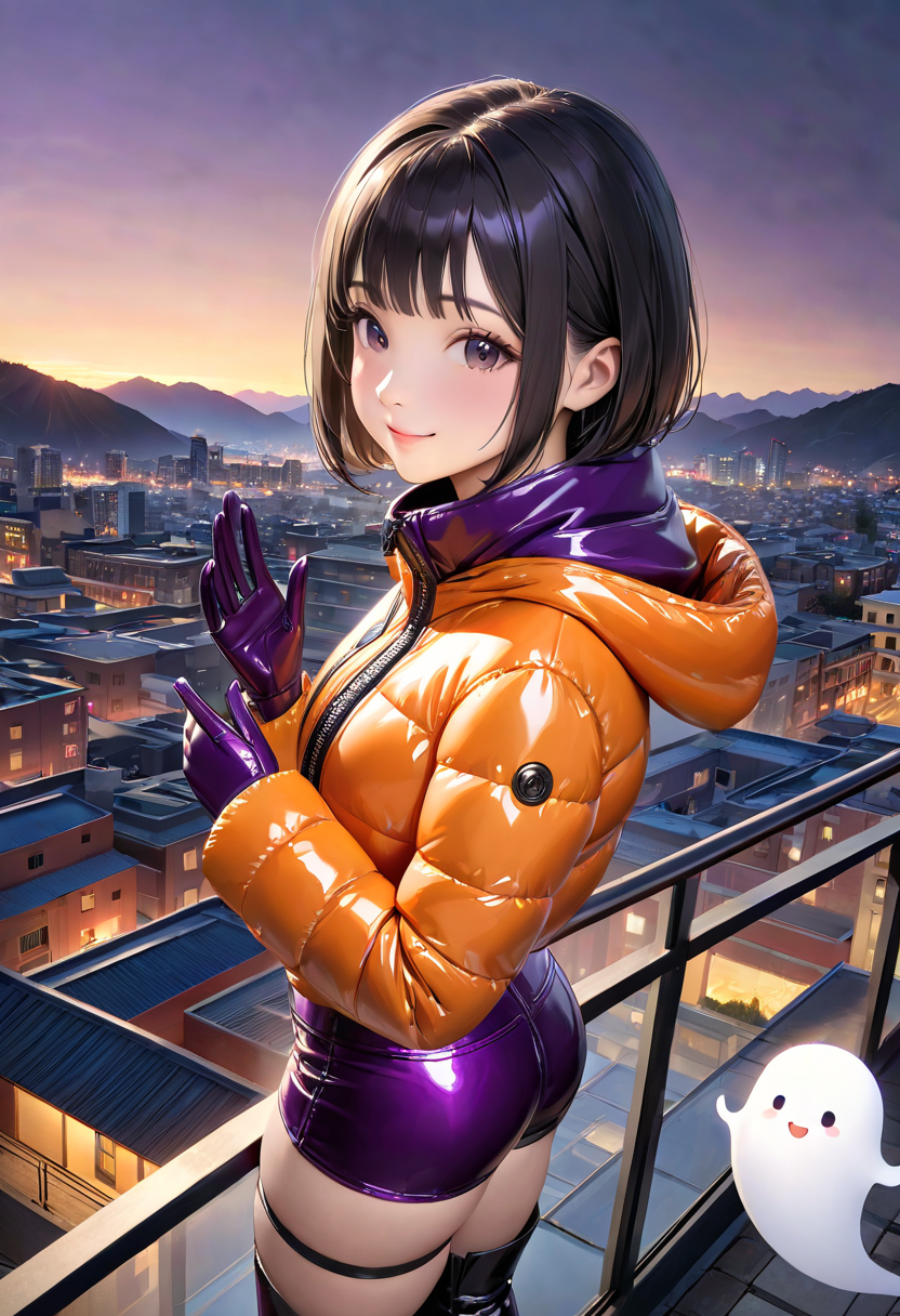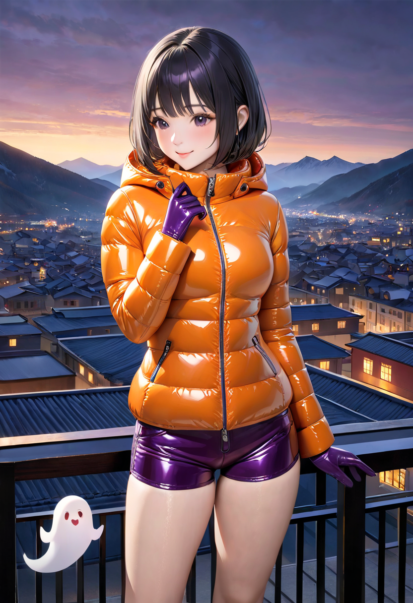 ハロウィンカラーのダウンジャケットとミニゴーストたち