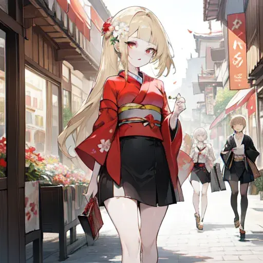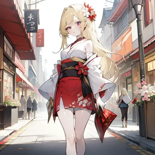 ミニスカ着物な金髪美少女