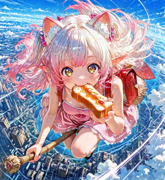 2枚)焼き芋を食べながら通学する魔女っ娘