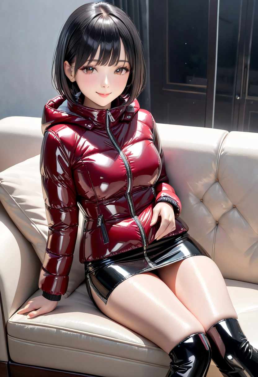 ダークレッドのダウンジャケット