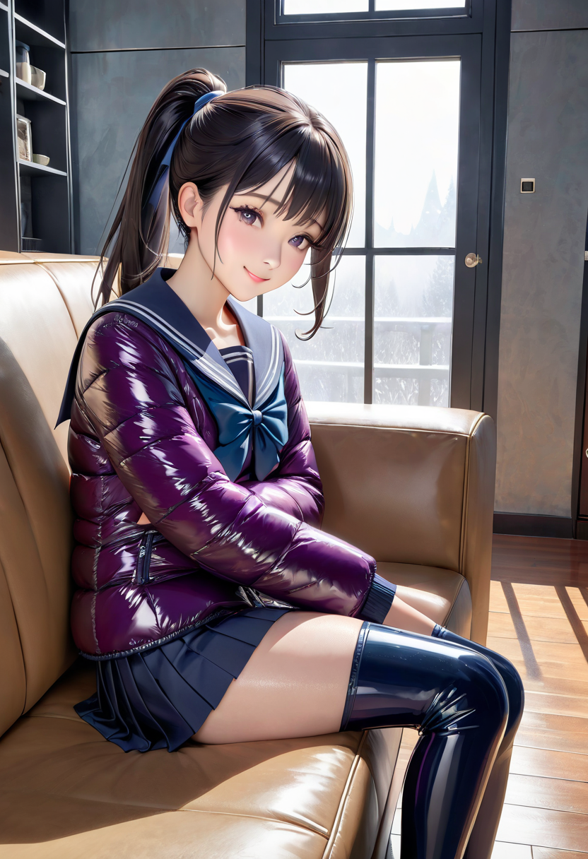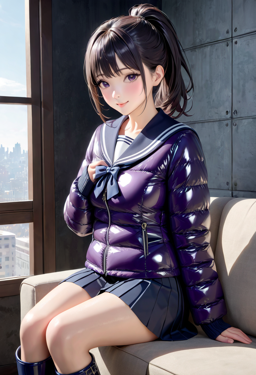 紫のセーラーダウン