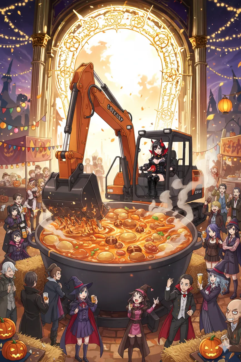 魔王様自らショベルカーを運転w 魔法を使えば良さそうな気がしますが
