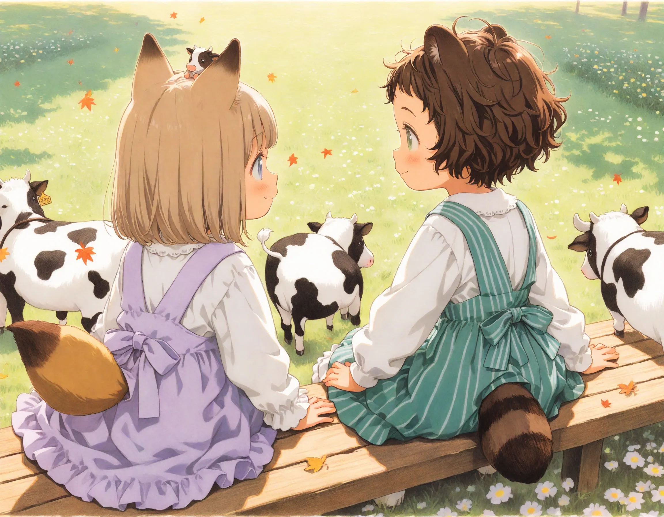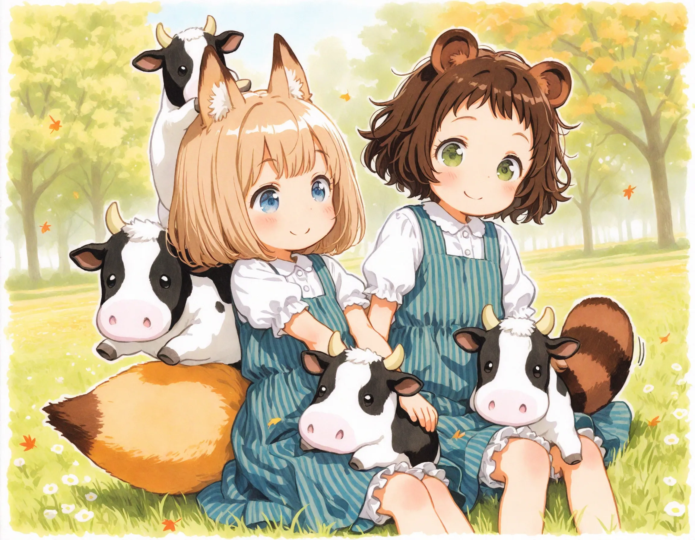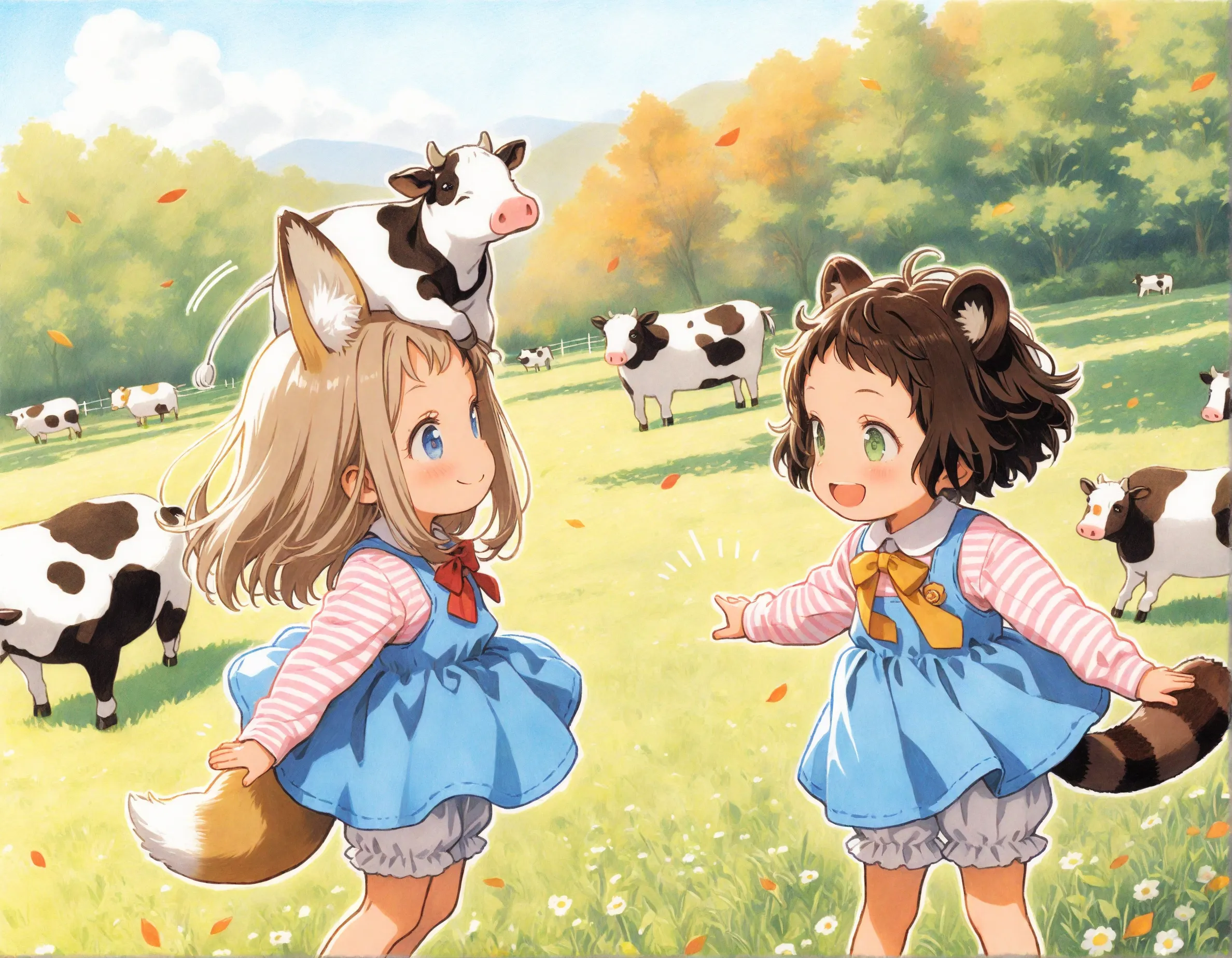コン子とポン子・牧場で牛さんと遊んだ