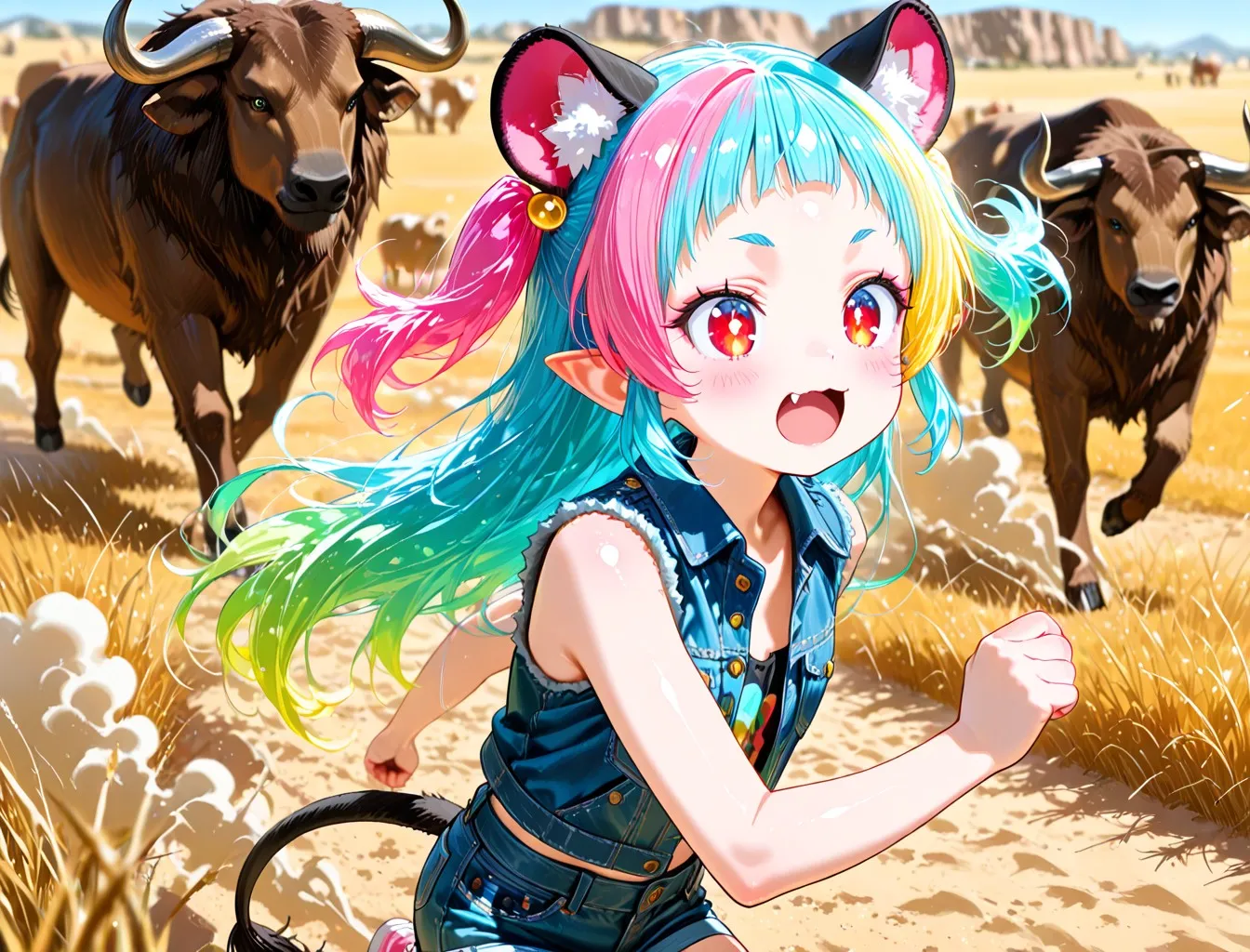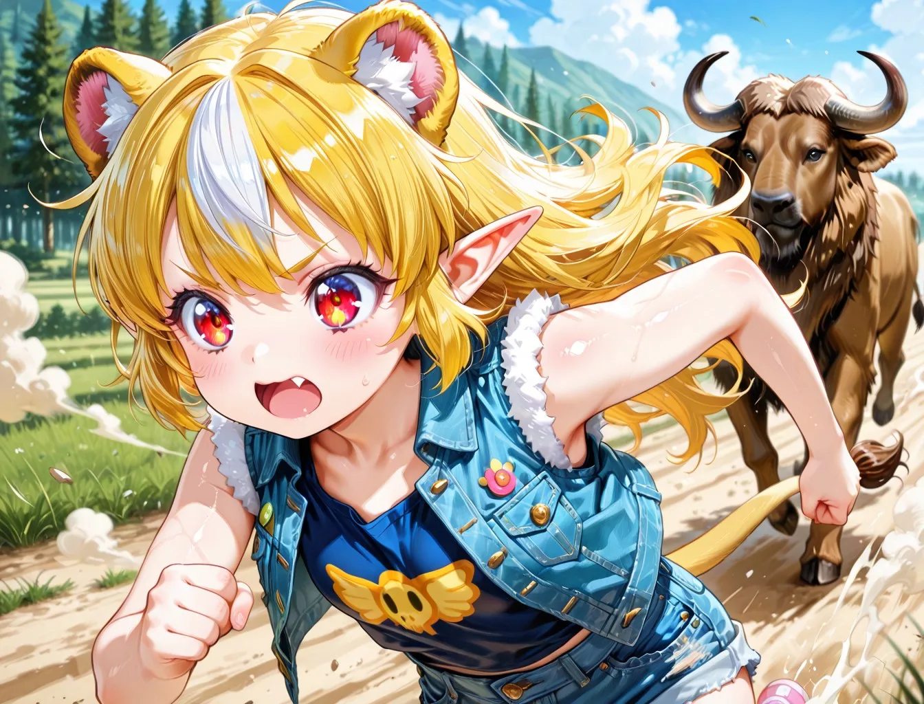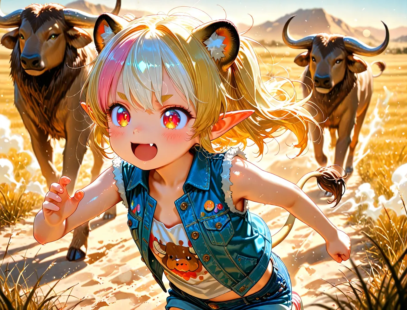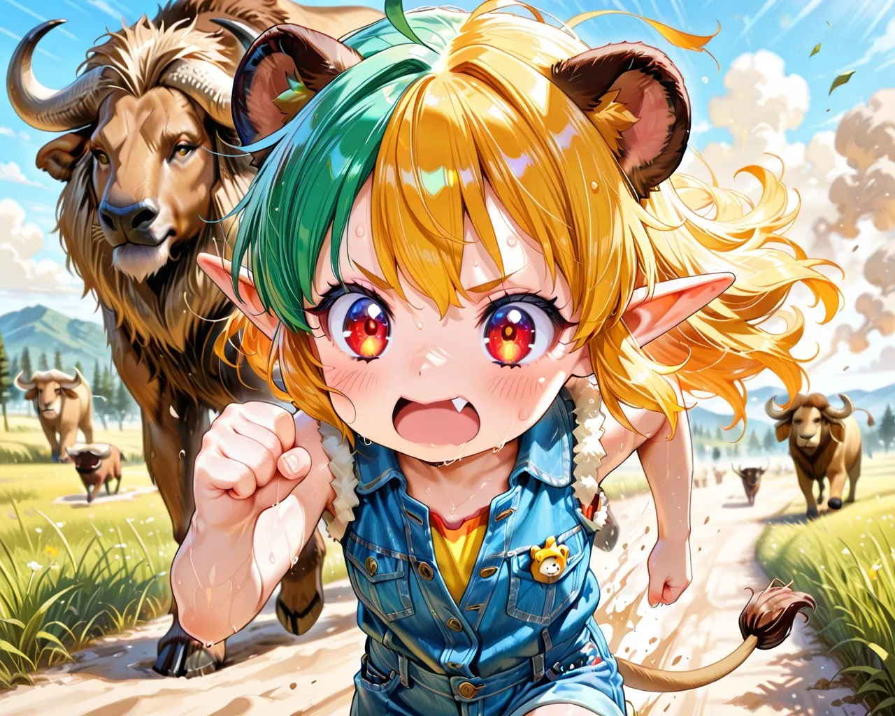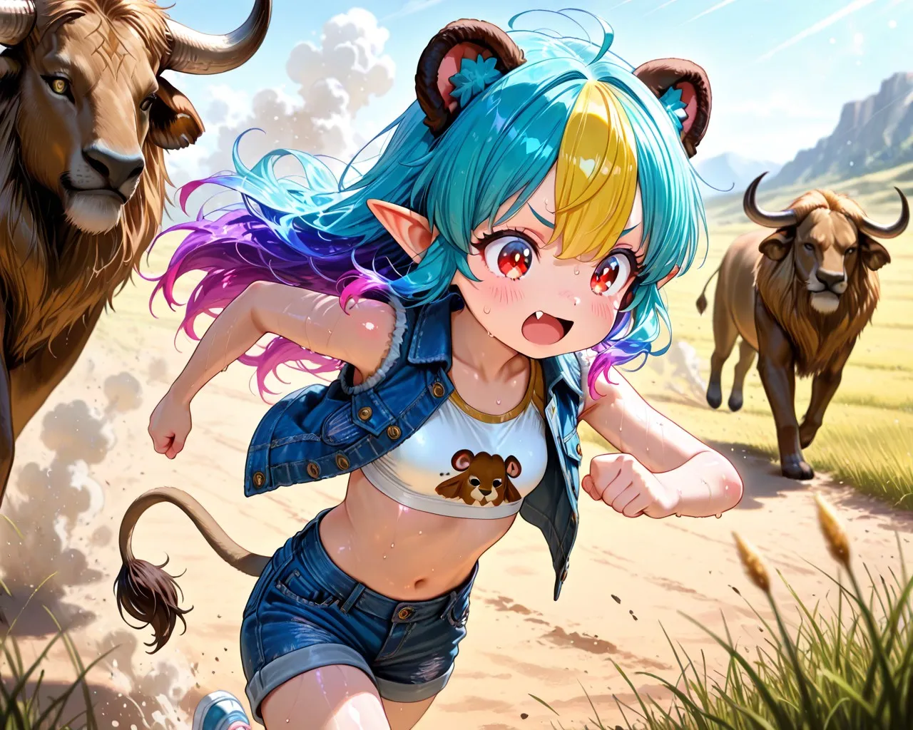 6枚)野牛から逃げる子ライオンちゃん