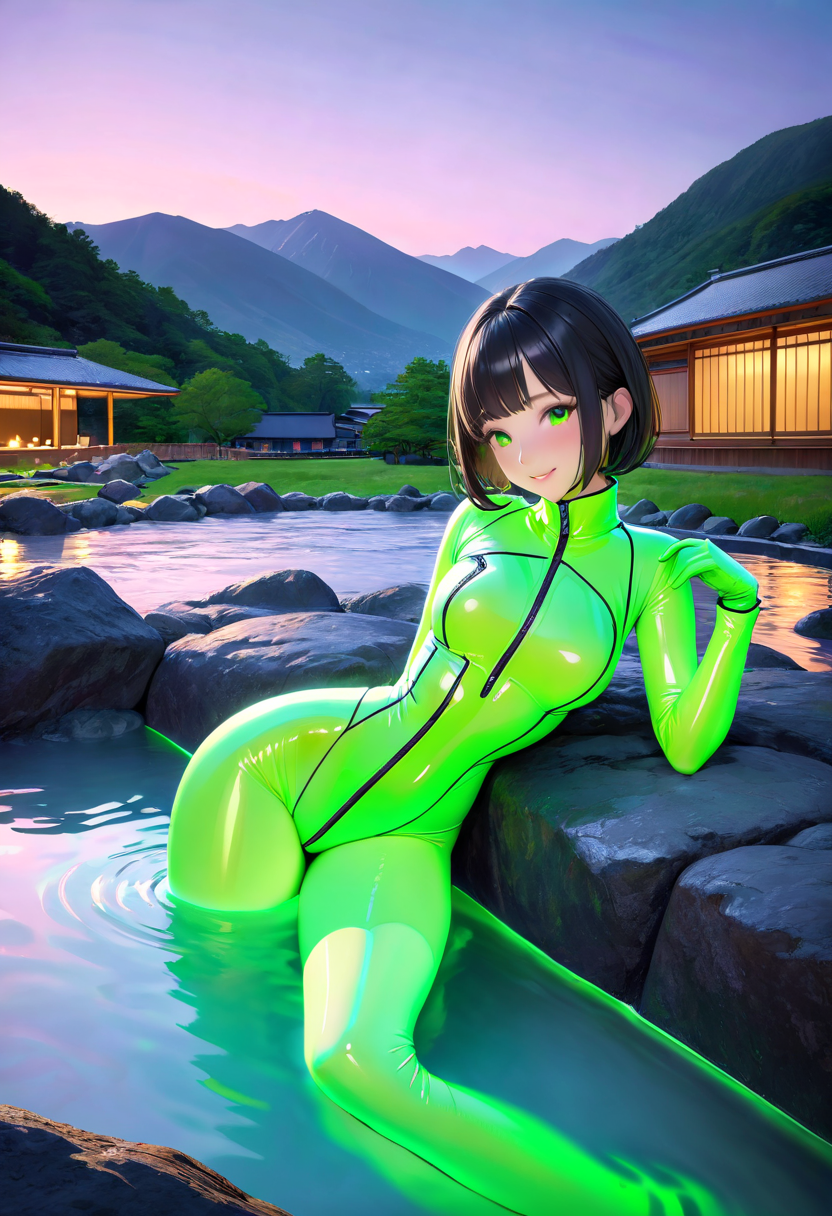 蓄光素材ラバースーツで温泉入浴