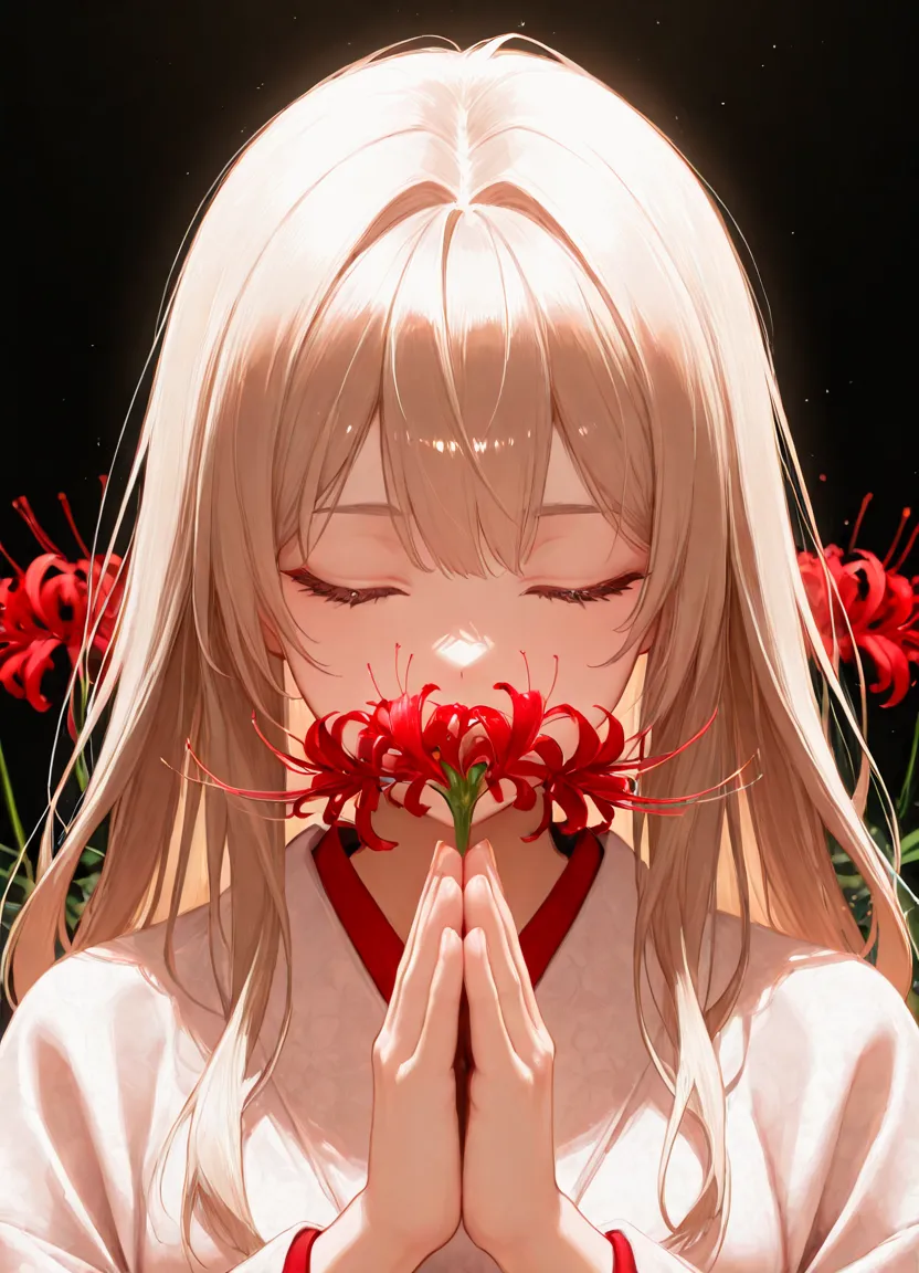 red spider lily,, appropriate posture,appropriate configuration,ideal ratio body proportions,perfect anatomy, <lora:Fixhands_anime_bdsqlsz_V1:1>, masterpiece,best quality,newest,absurdres,highres,ultra high res,8K UHD,hyper-detailed,