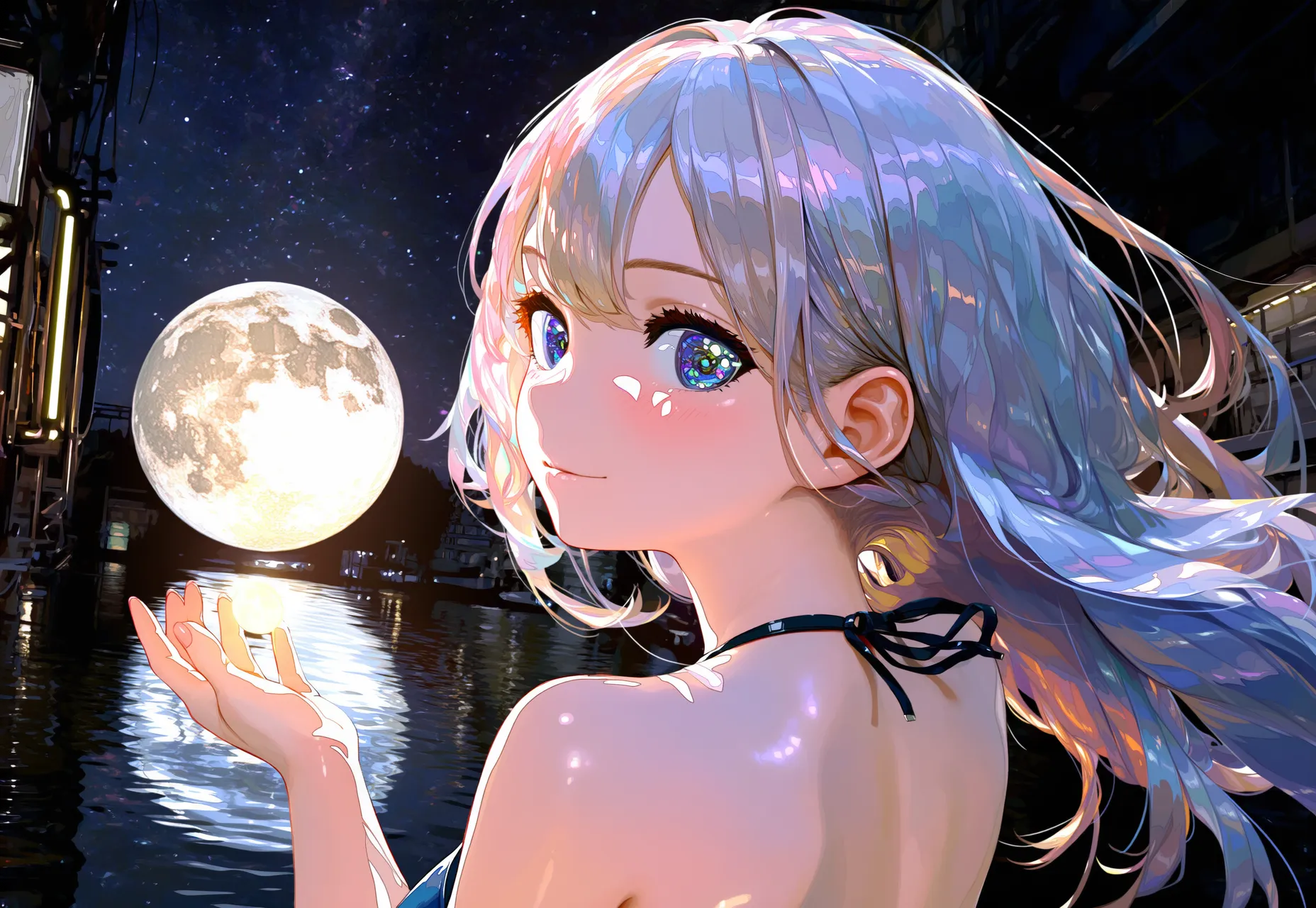 Girl Capturing the Moon in Fantasy
