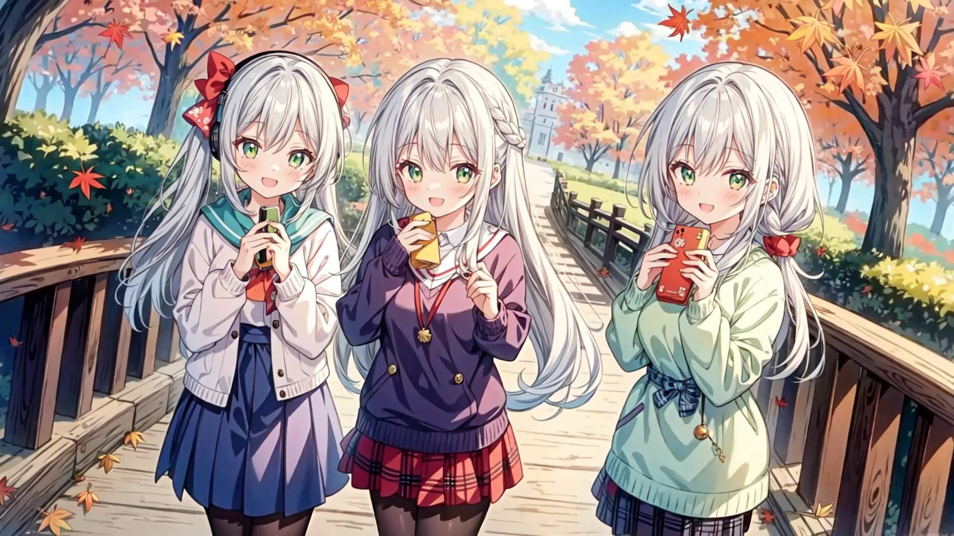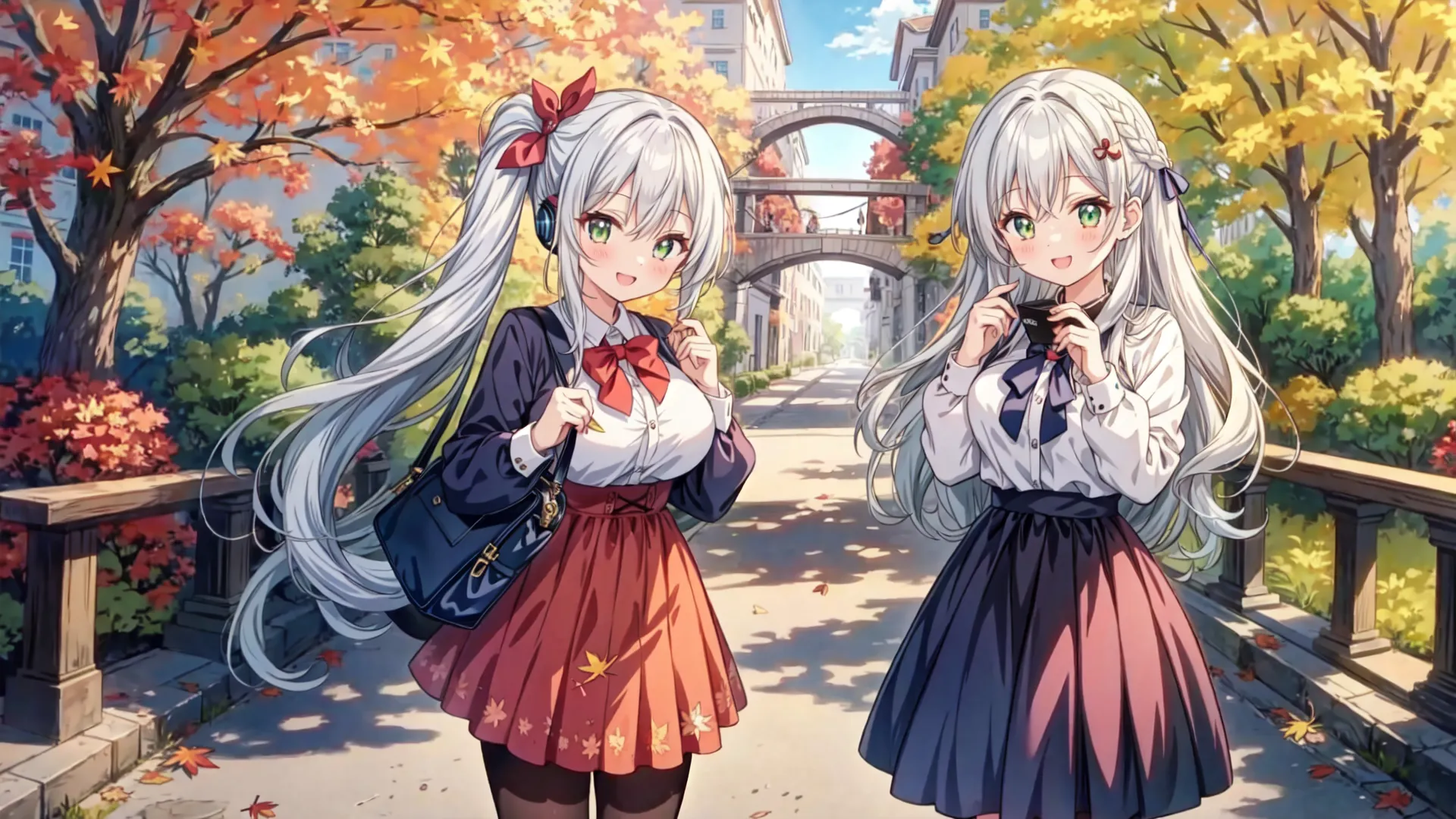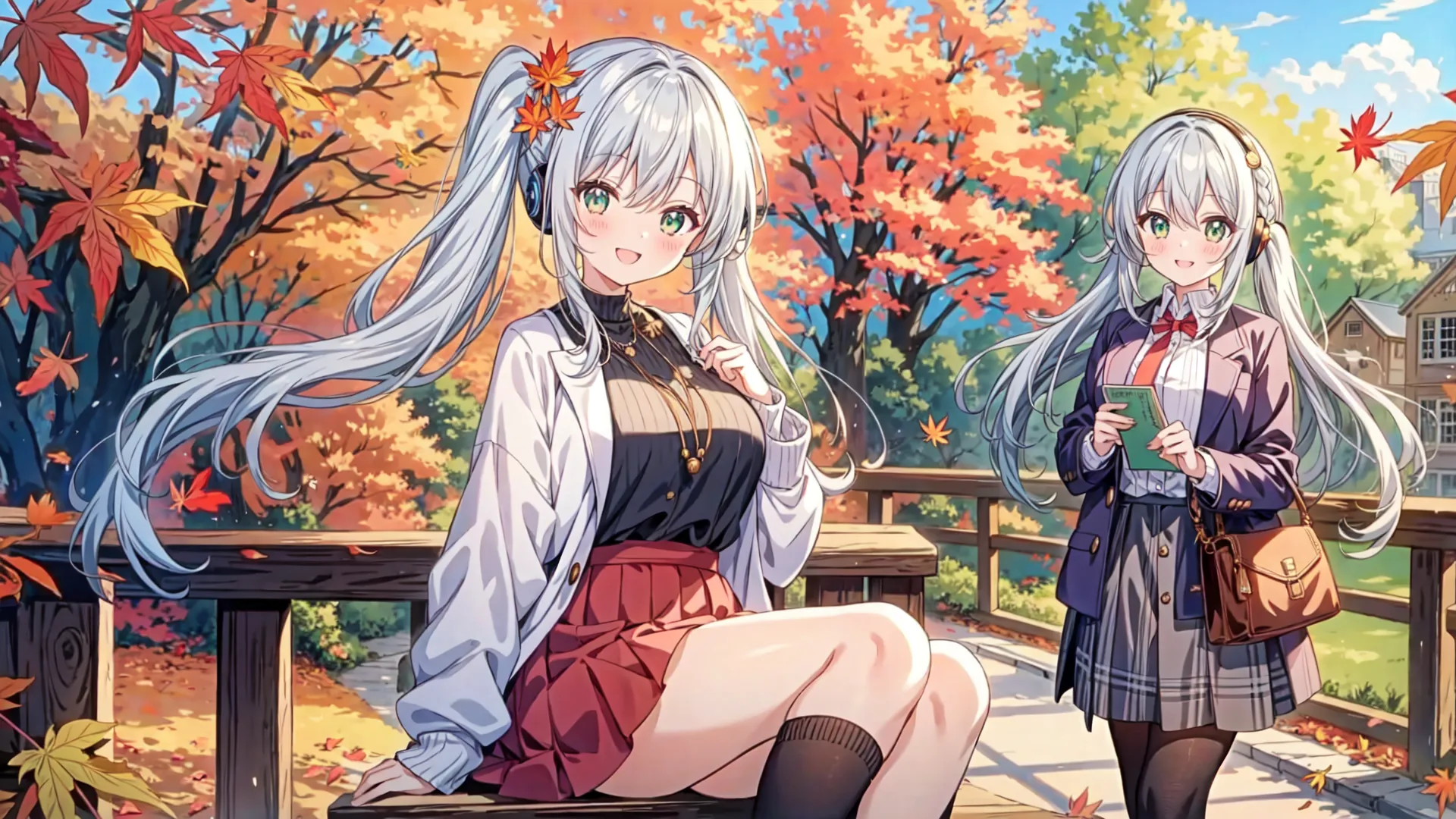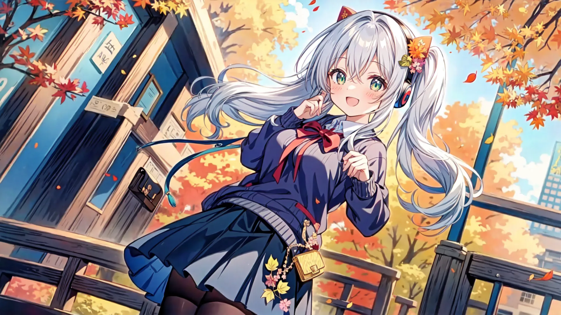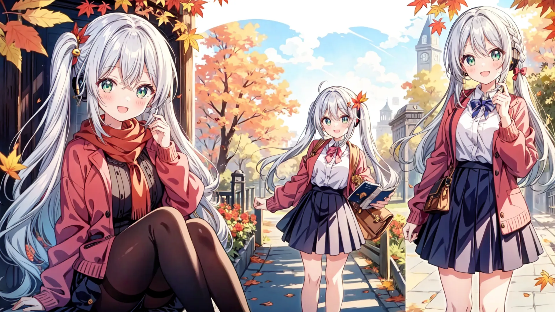 Silver-Haired Girl's Autumn School Days