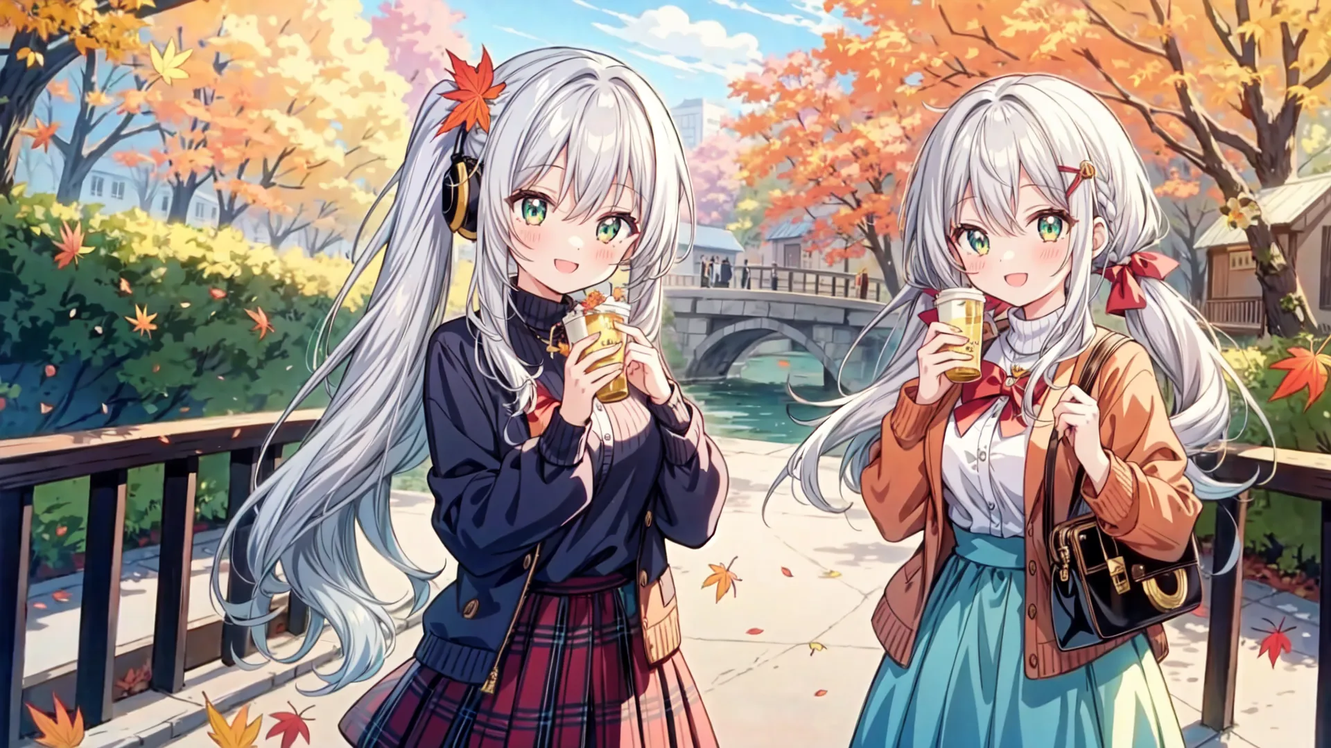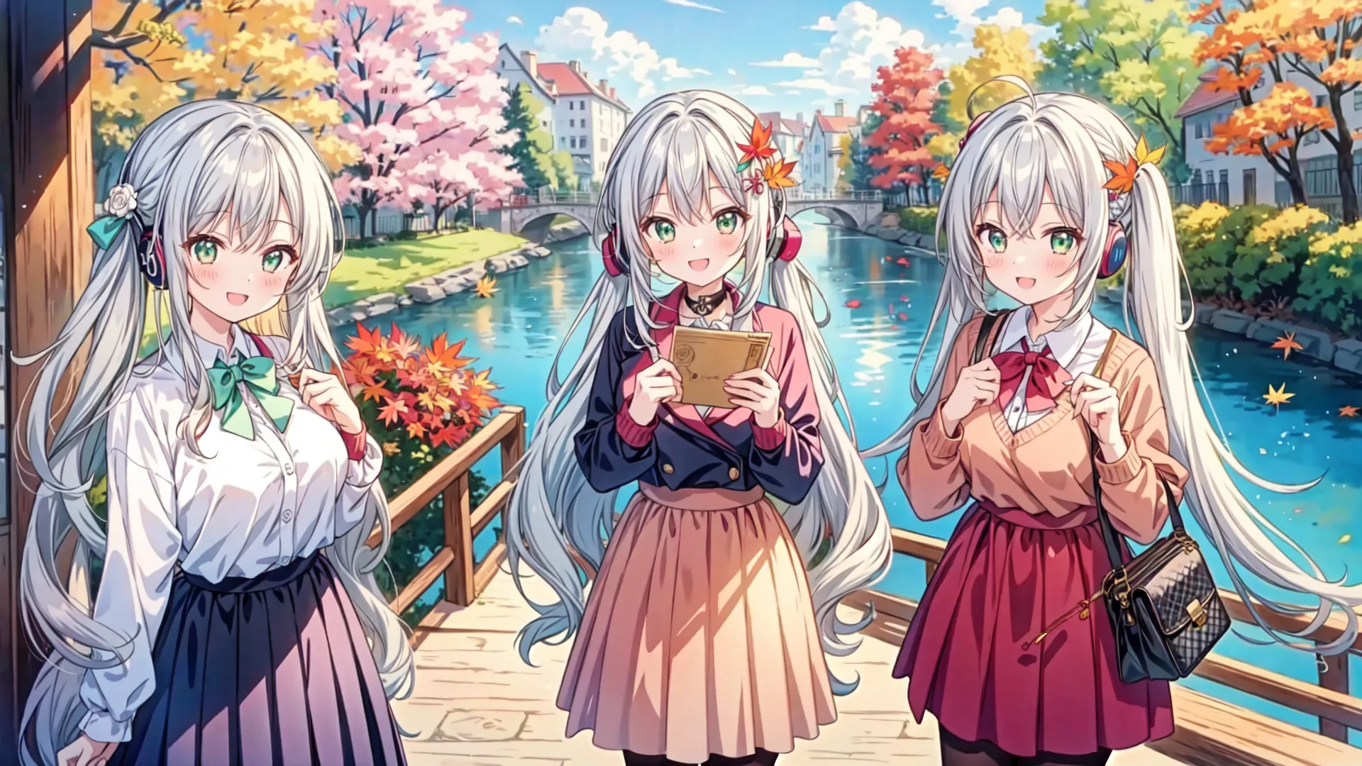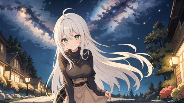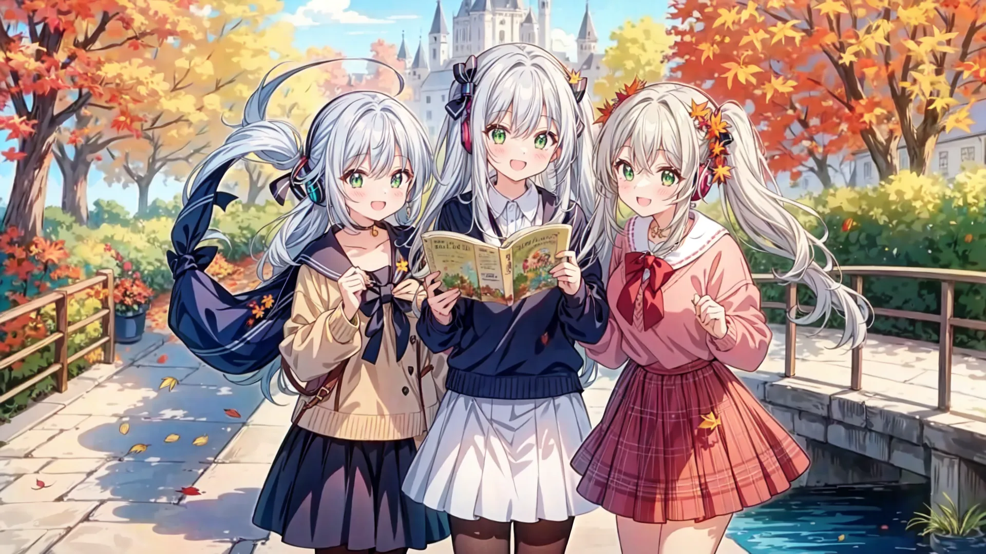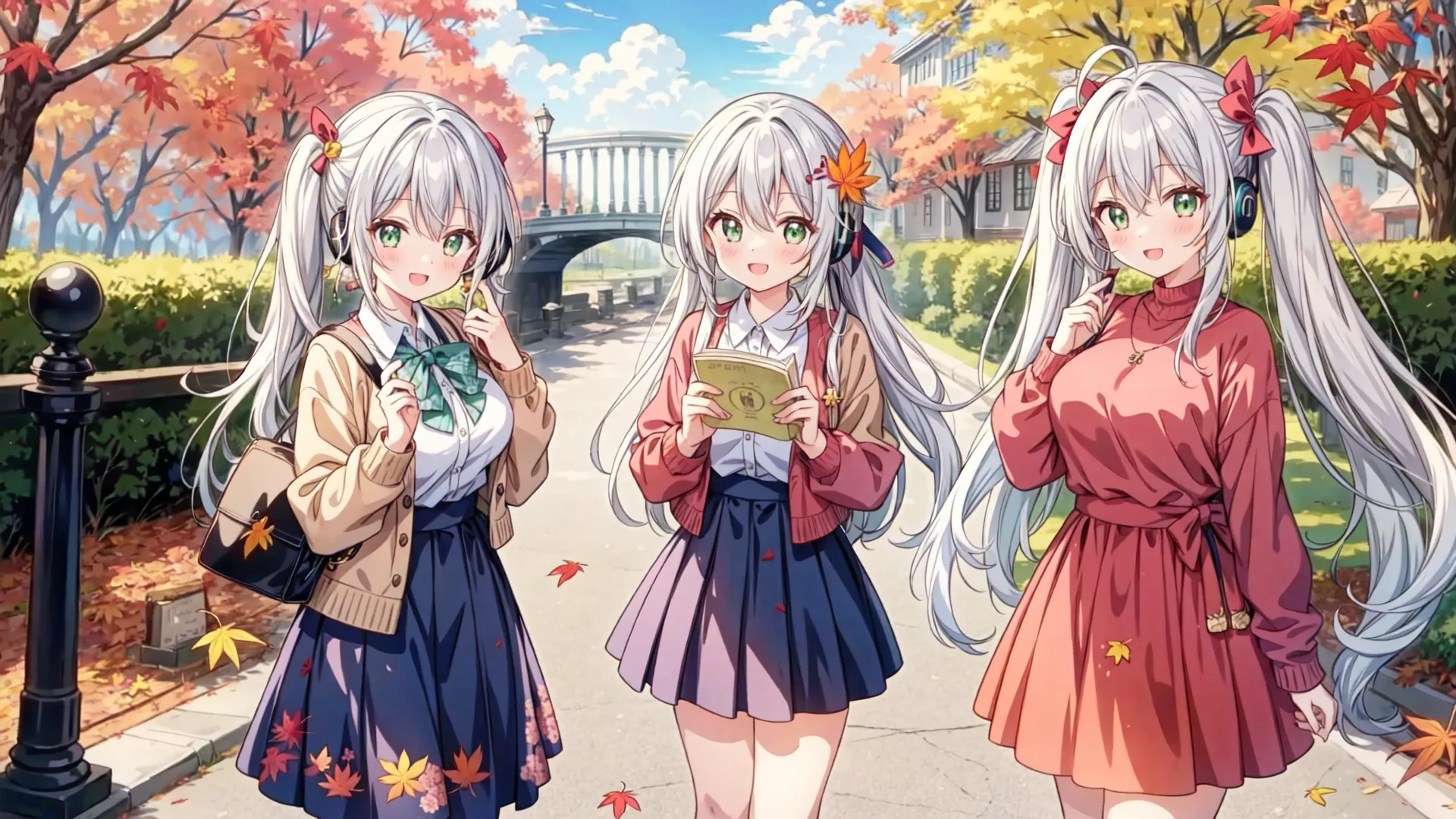 Silver-Haired Girl's Autumn School Days