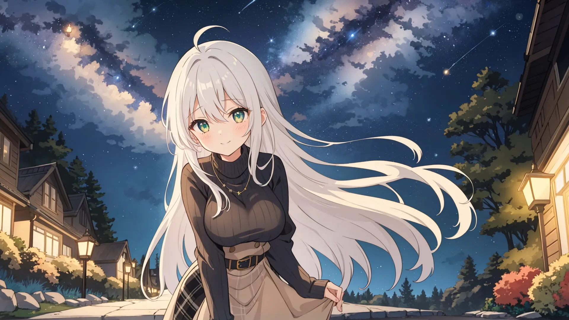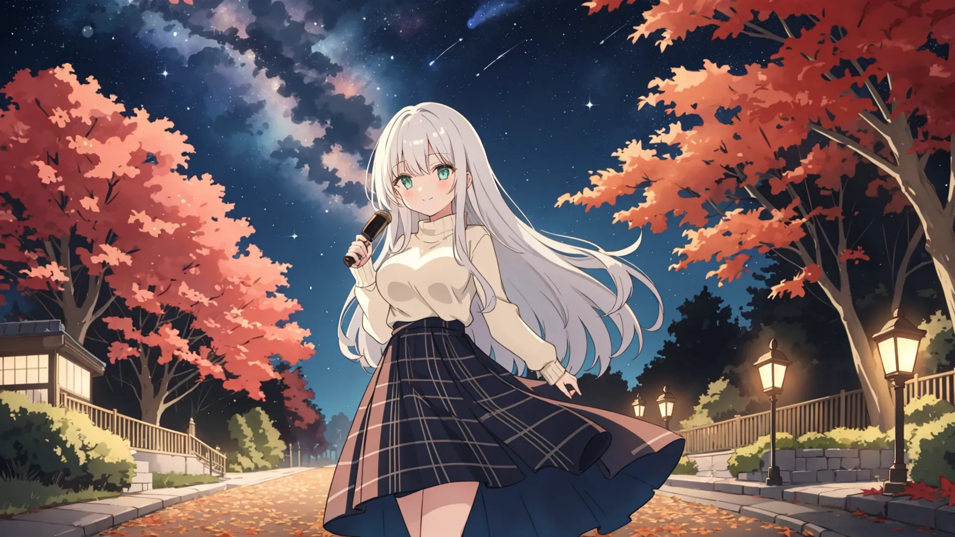 Silver-Haired Girl's Night Stroll Under the Stars