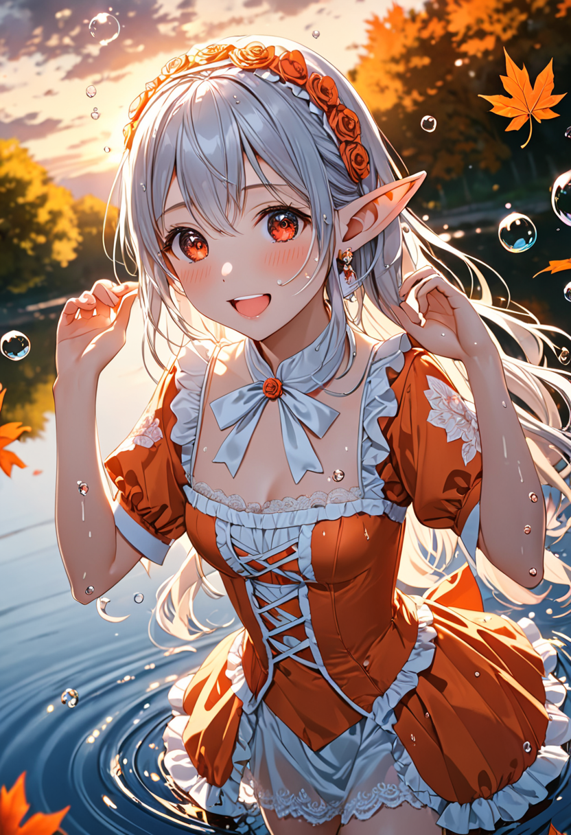Elf's Bubble Play by the Autumn Lakeside