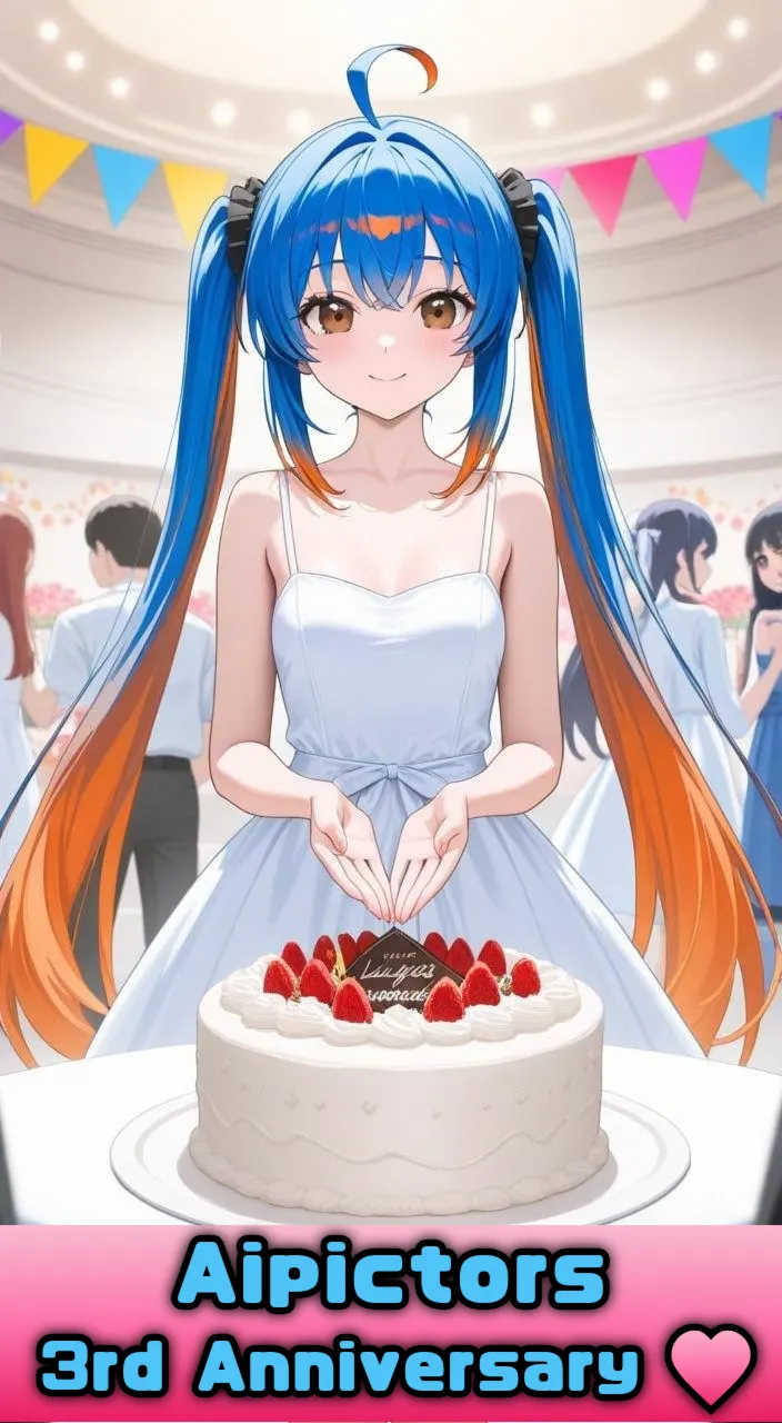 Blue-Haired Girl's Anniversary Cake Gift