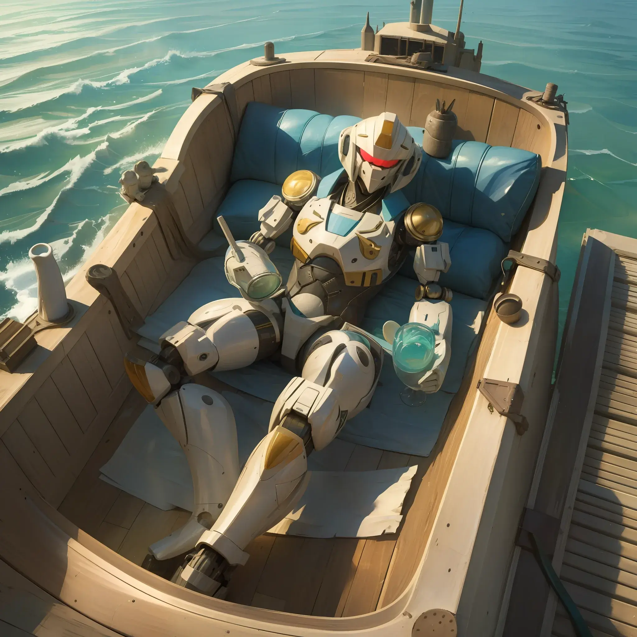 ロボがボートで寝っ転がって飲んだくれてるぅ!?クッソ笑った