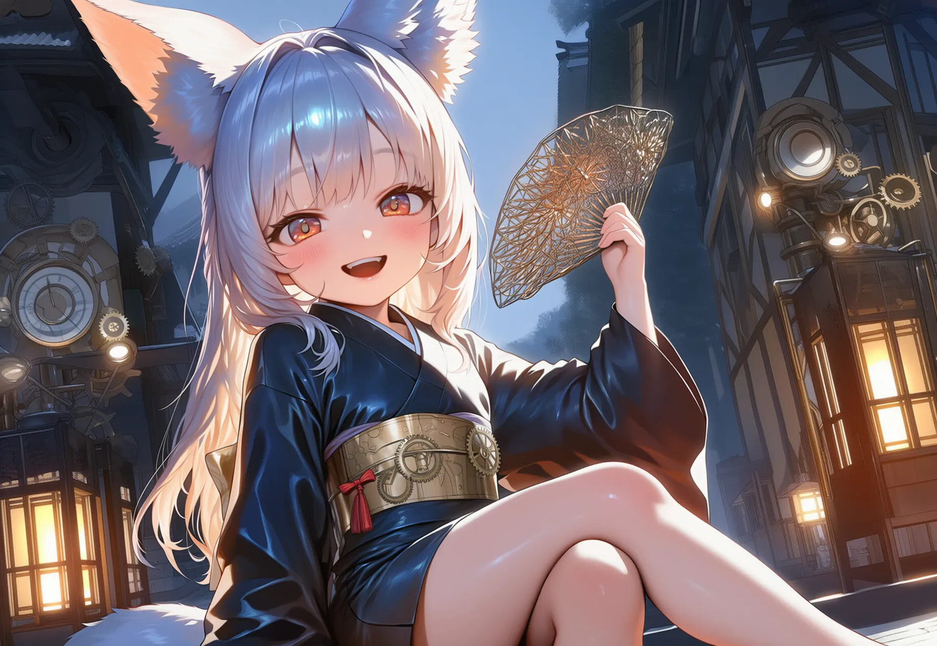 Fox Girl with Fan at Dusk