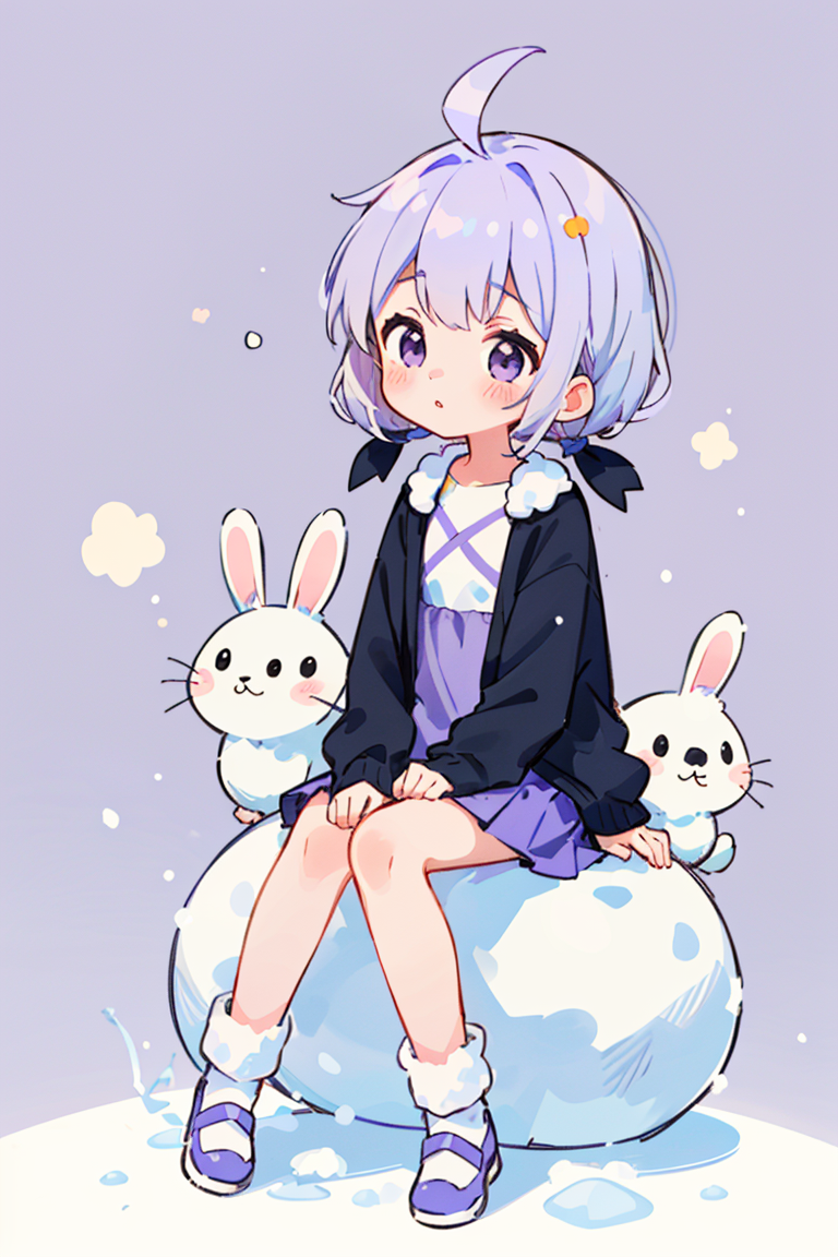 紫髪の女子可愛い!雪うさぎ可愛い!
