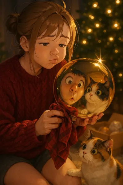 Cat and Girl's Winter Wreath Making