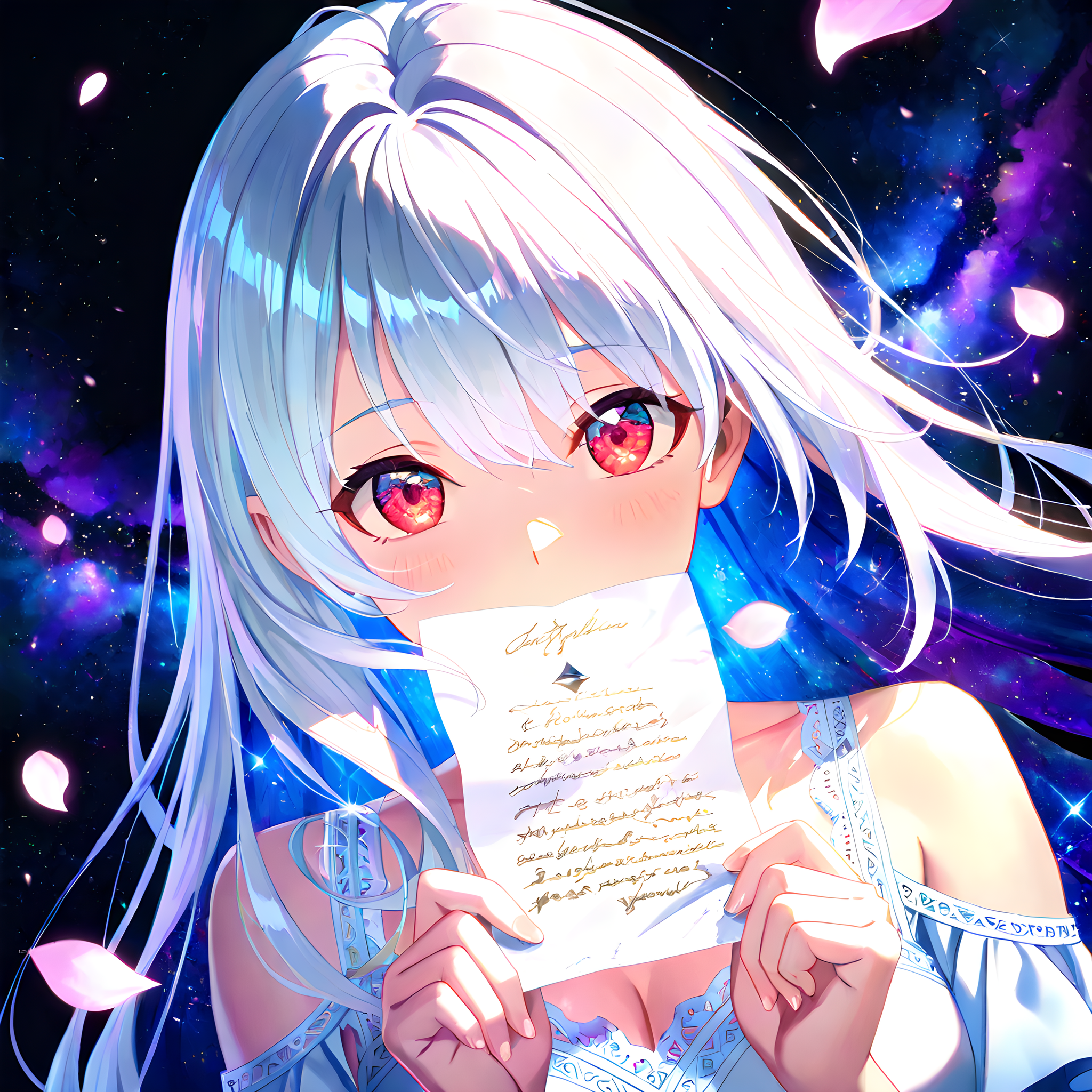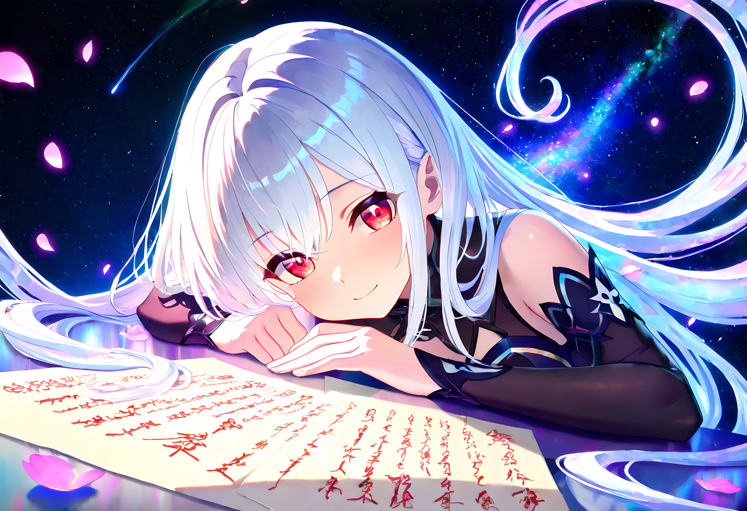 White-Haired Girl Reading a Book in Space