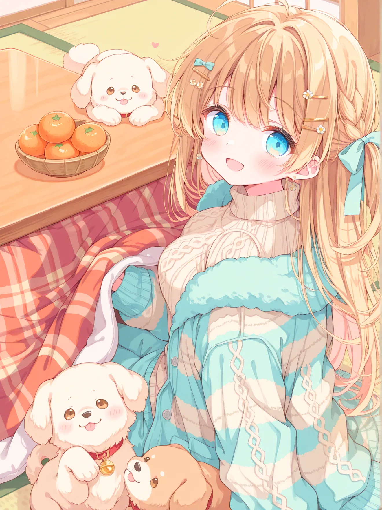 ぬくぬくこたつで子犬とあったか