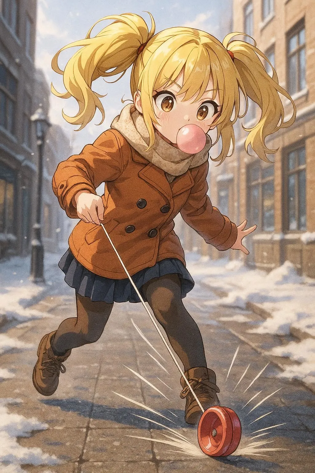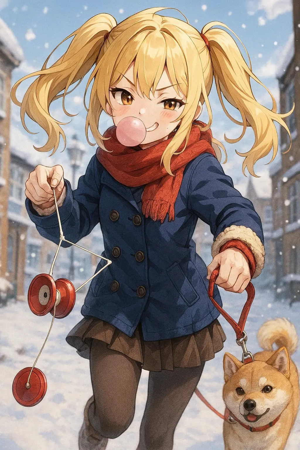 冬の街で犬の散歩