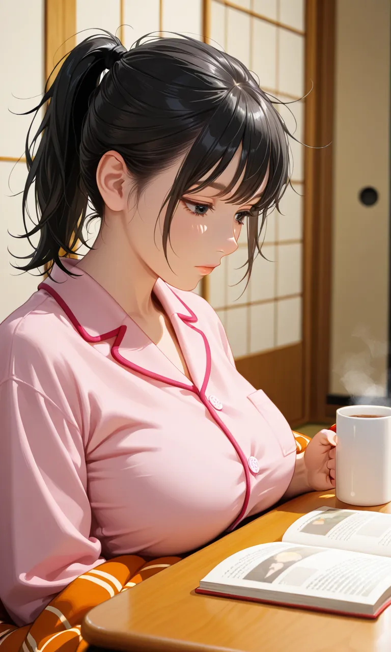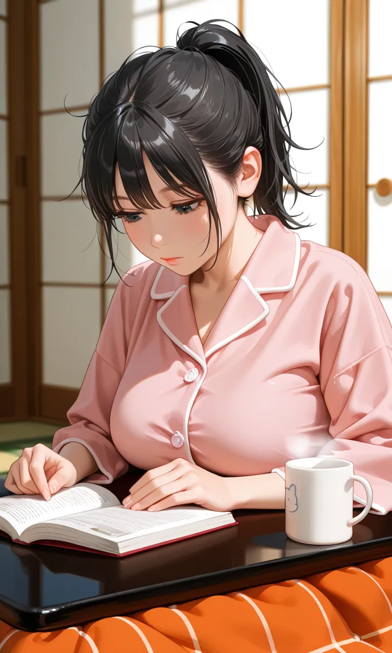 こたつで読書をする女史