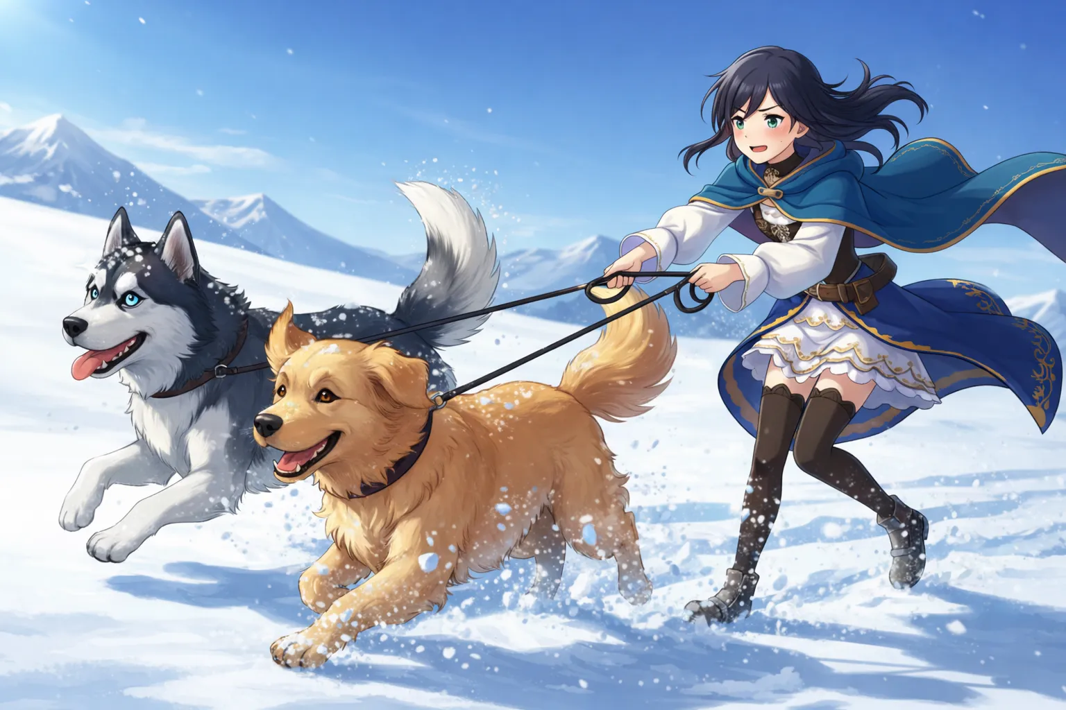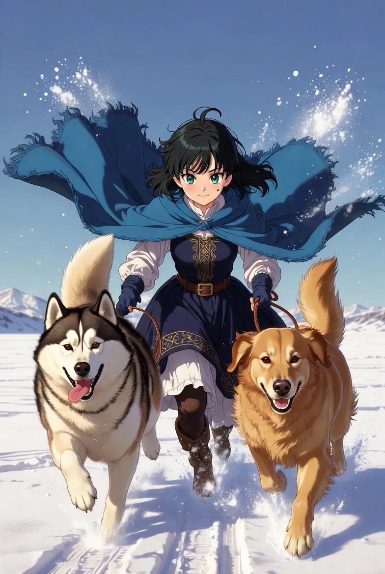 Adventurer in the Snow with Loyal Companions