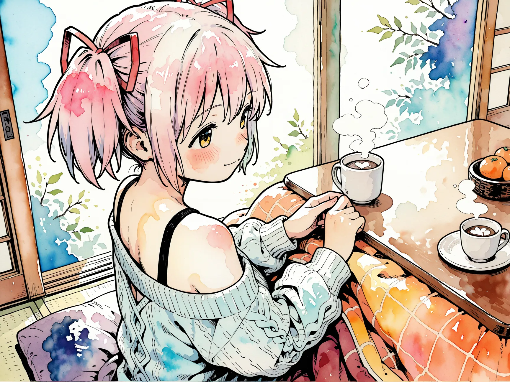 水彩画良いです アプデしたりすると怖いんですよねComfyUIが特に (悪ほむがウラヤマすぎです...😭)