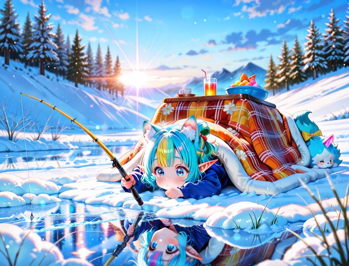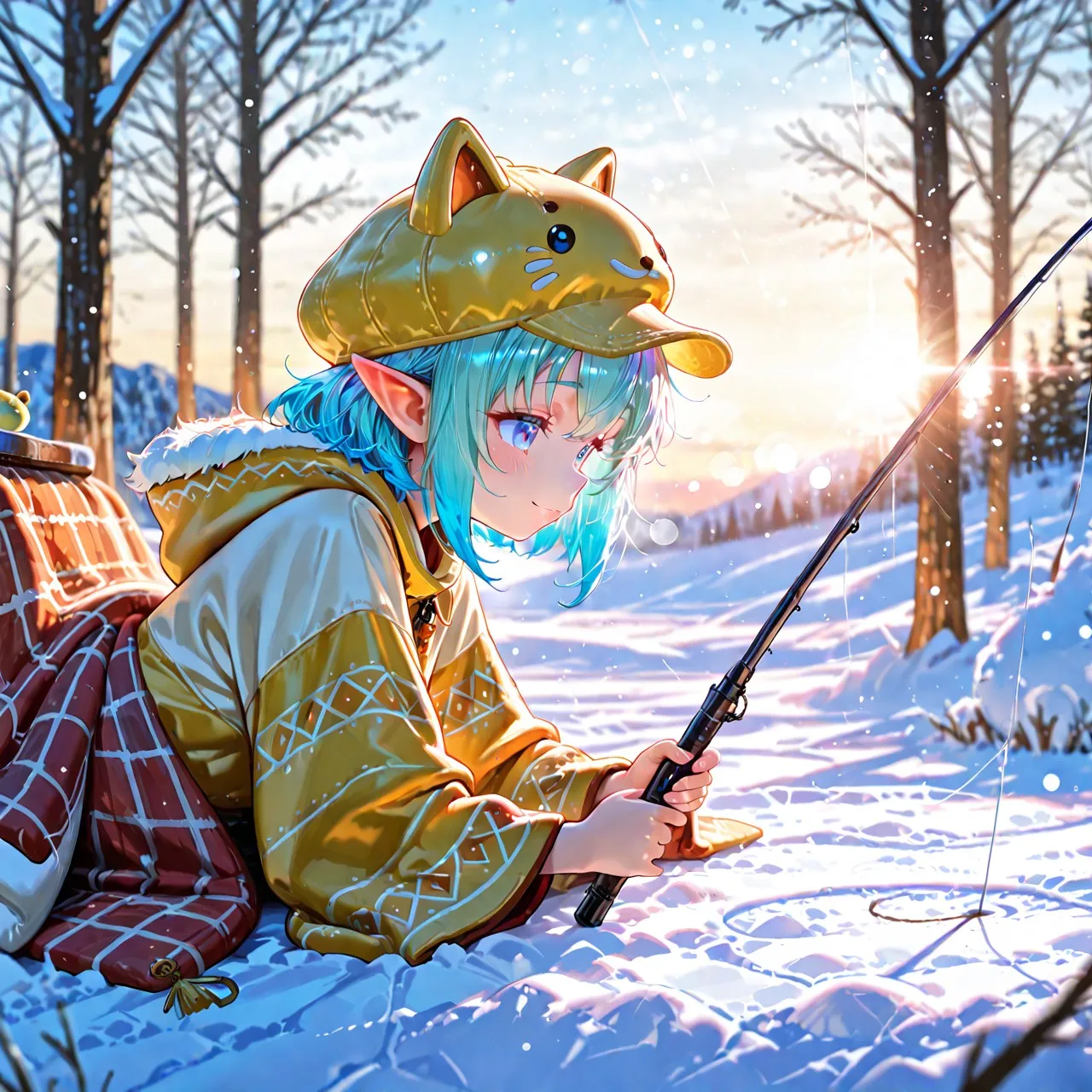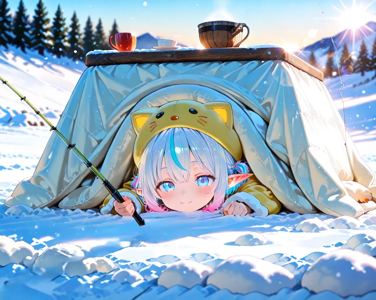 3枚)コタツで釣り 寝そべり