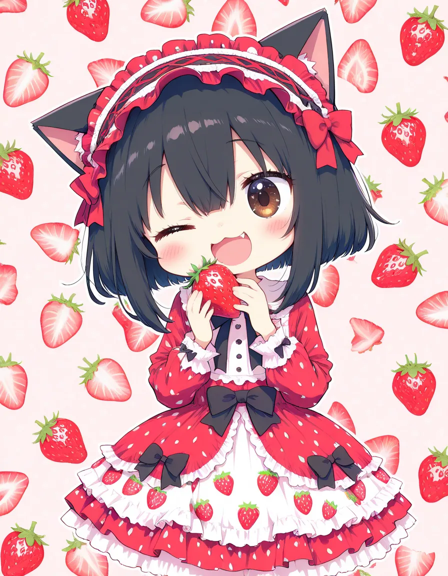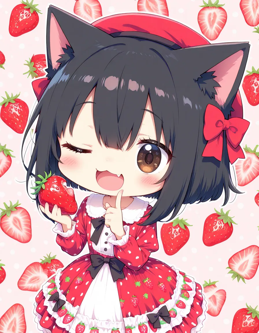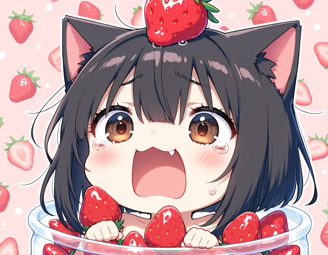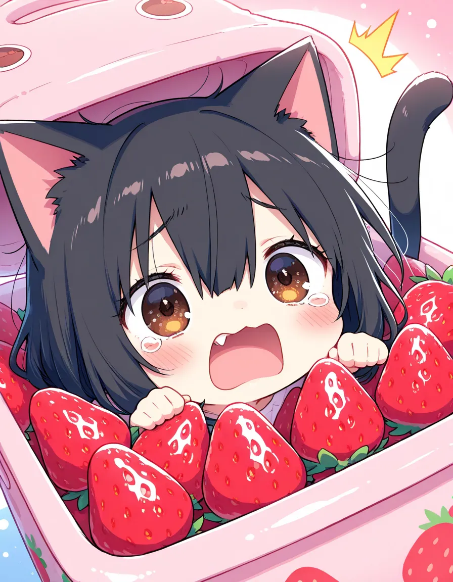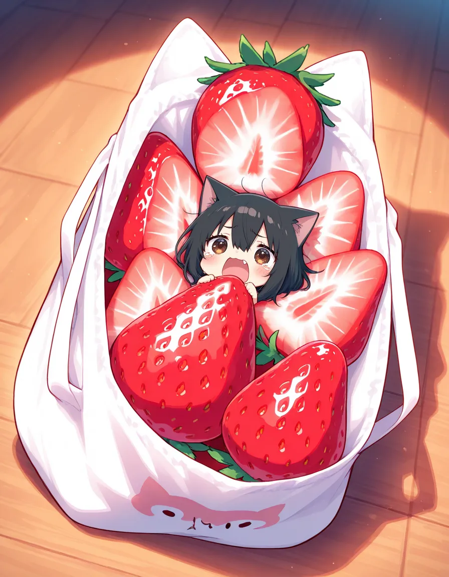 ヘタにゃん可愛い!いちご美味しそう!