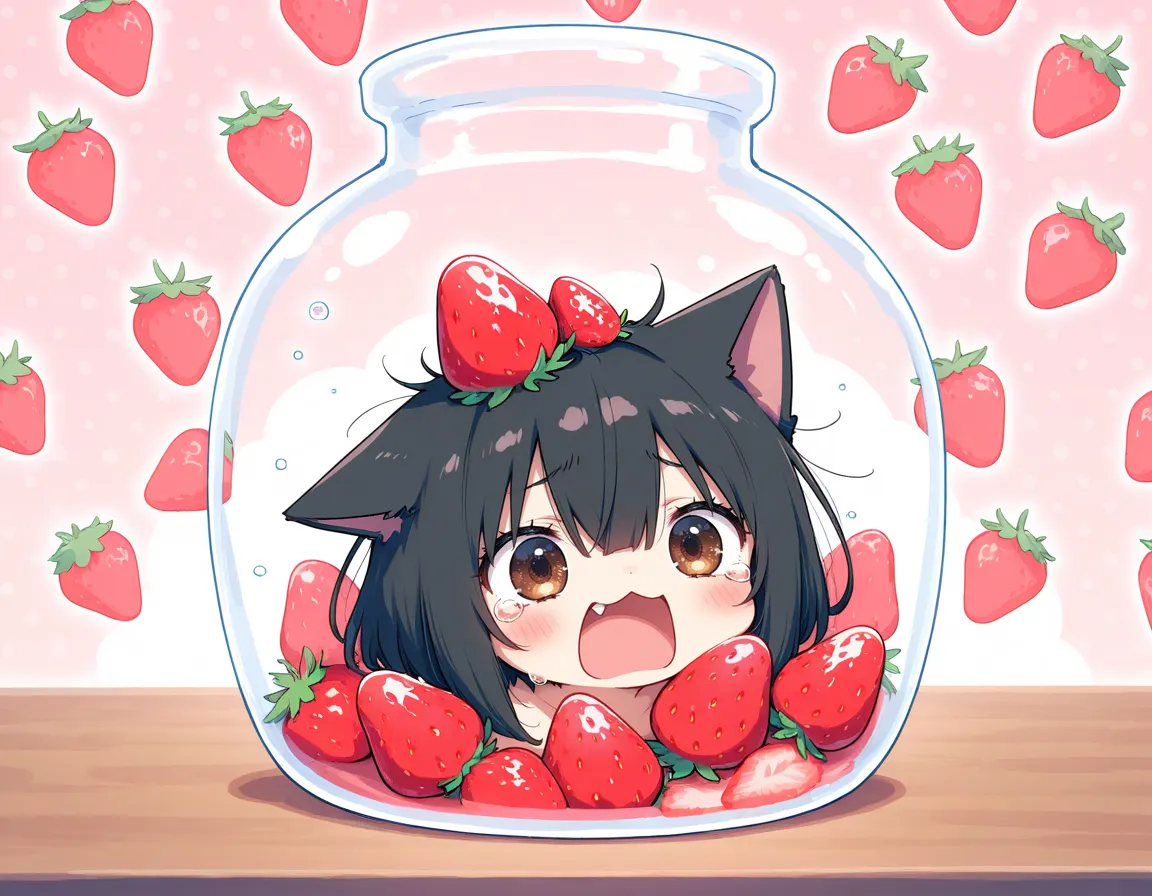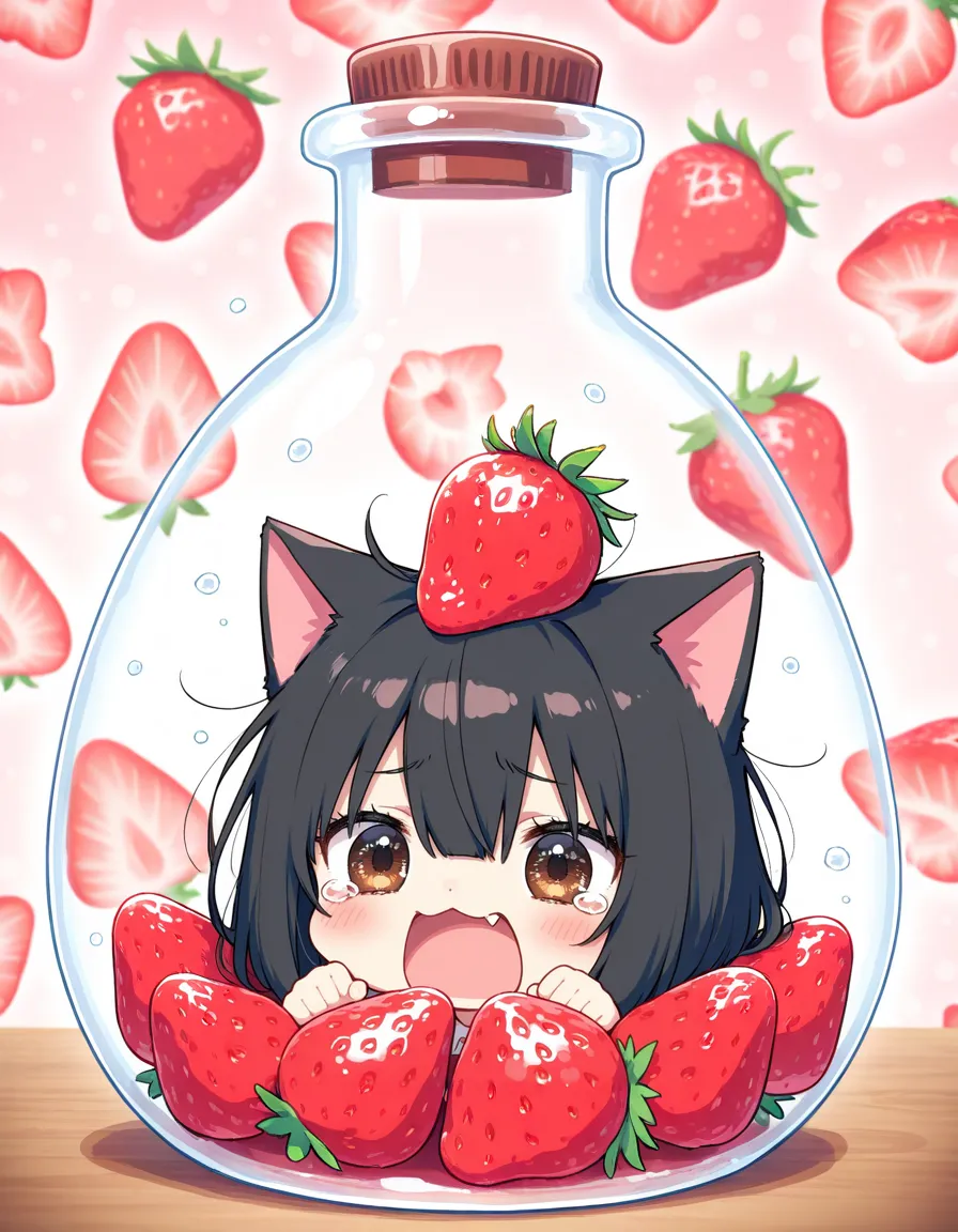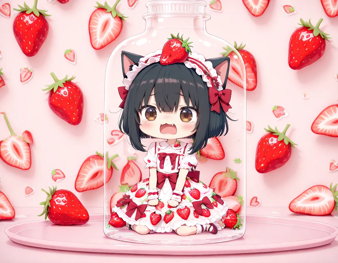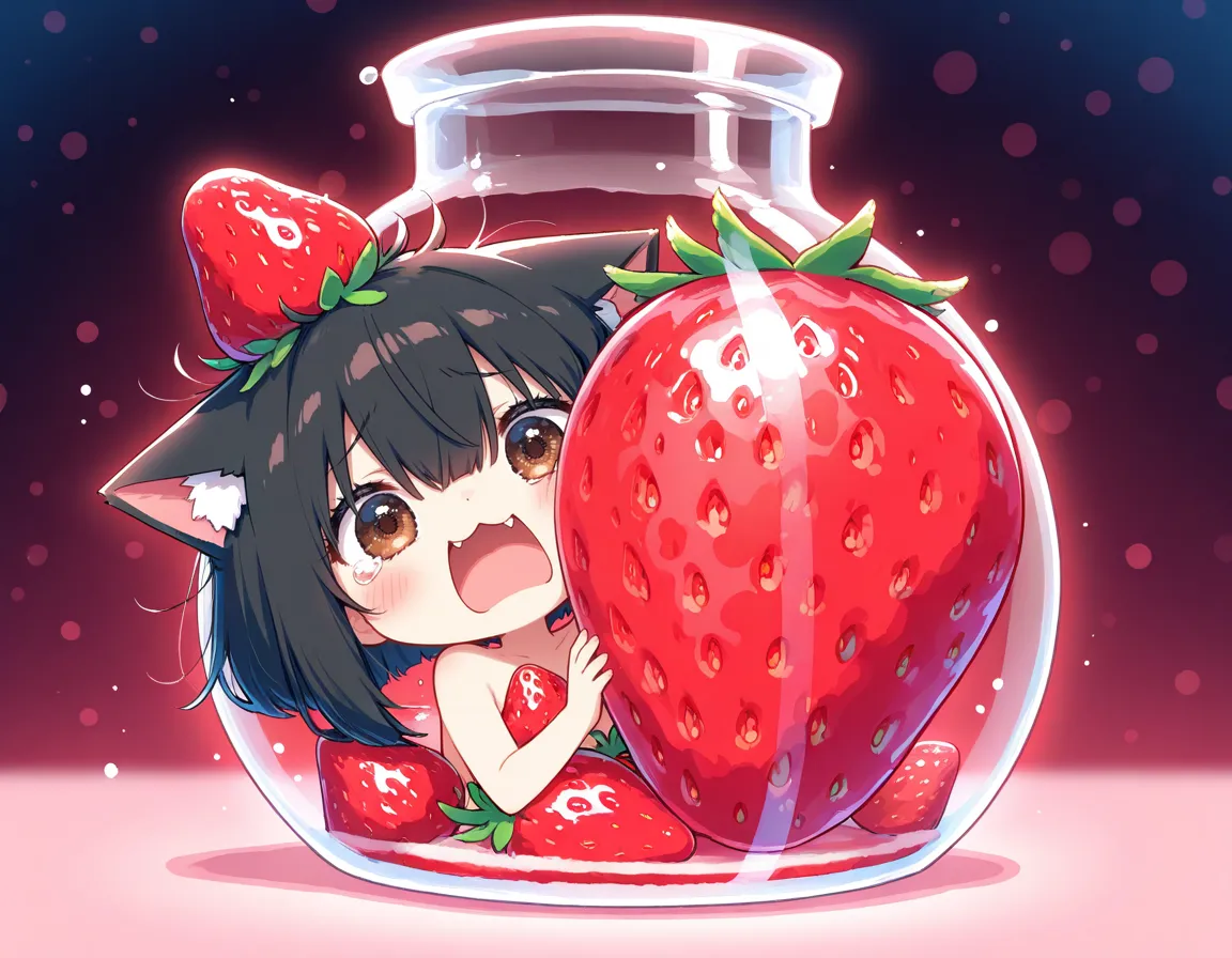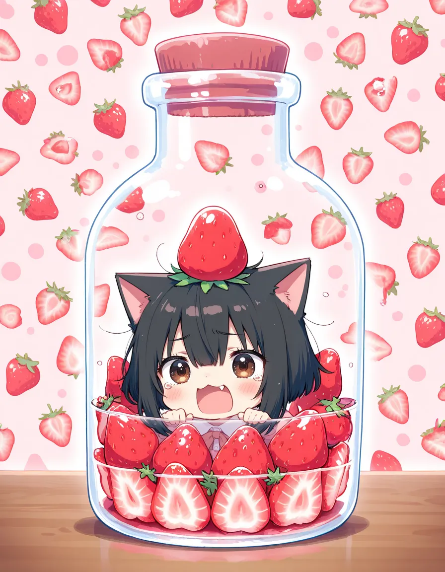ヘタにゃん可愛い!いちご美味しそう!