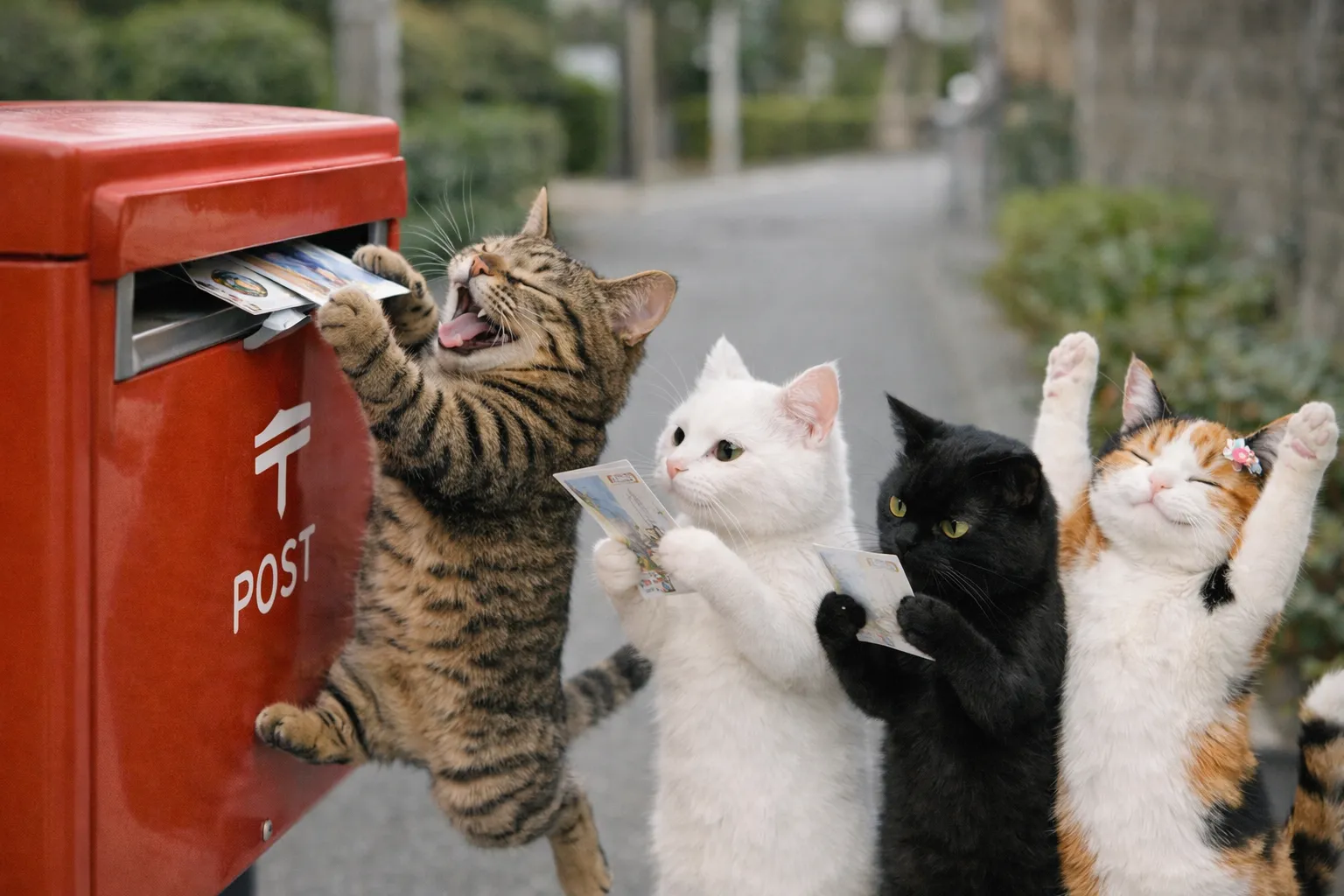 ポストカードを入れてる猫ちゃんたち可愛い!