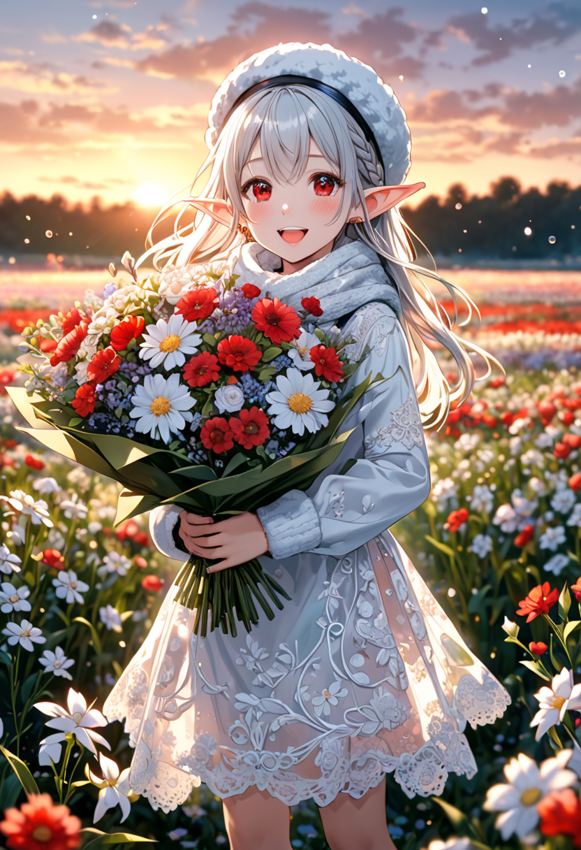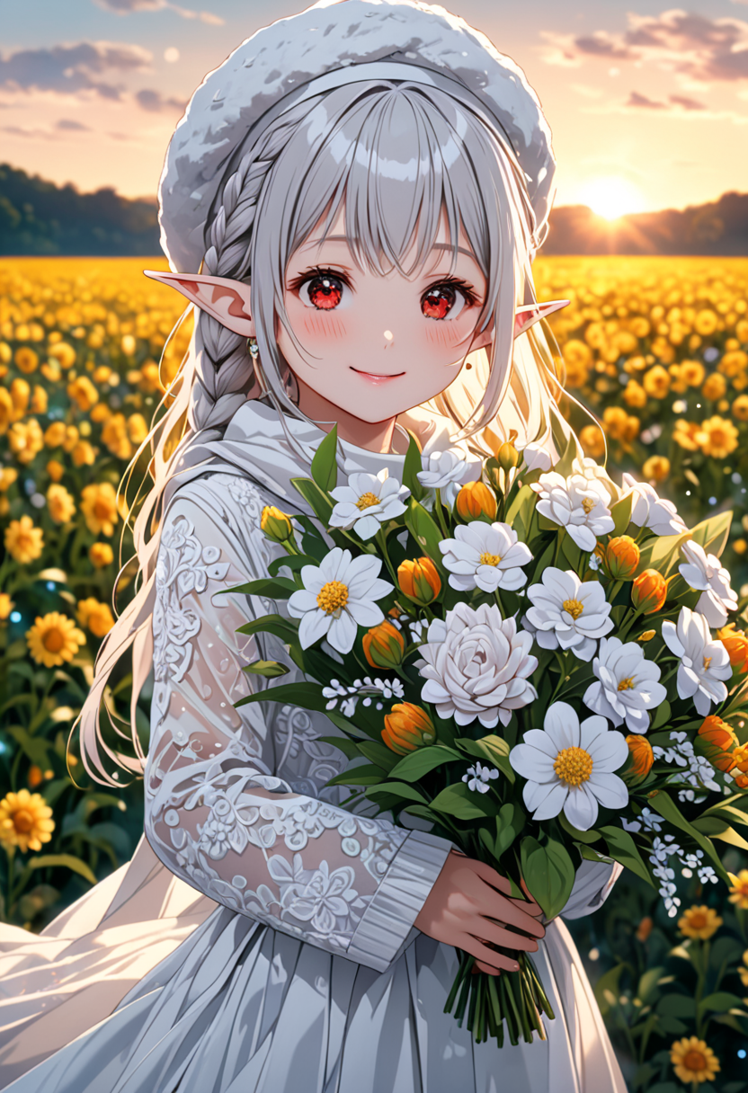 Elf's Smile in the Sunset Flower Field