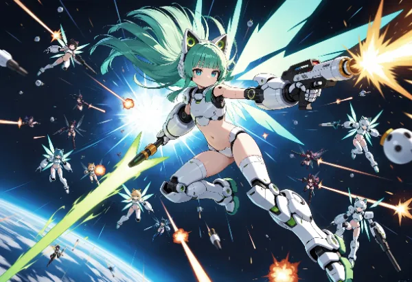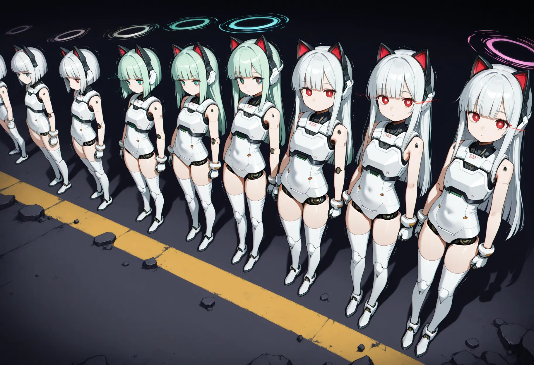 thighs, mechanical arms, white arms, mechanical legs, white legs, mechanical groin, mechanical armpits, ([doll joints:robot joints:0.4]:1.3), white mechanical body, navel, white breastplate, white crotch plate,