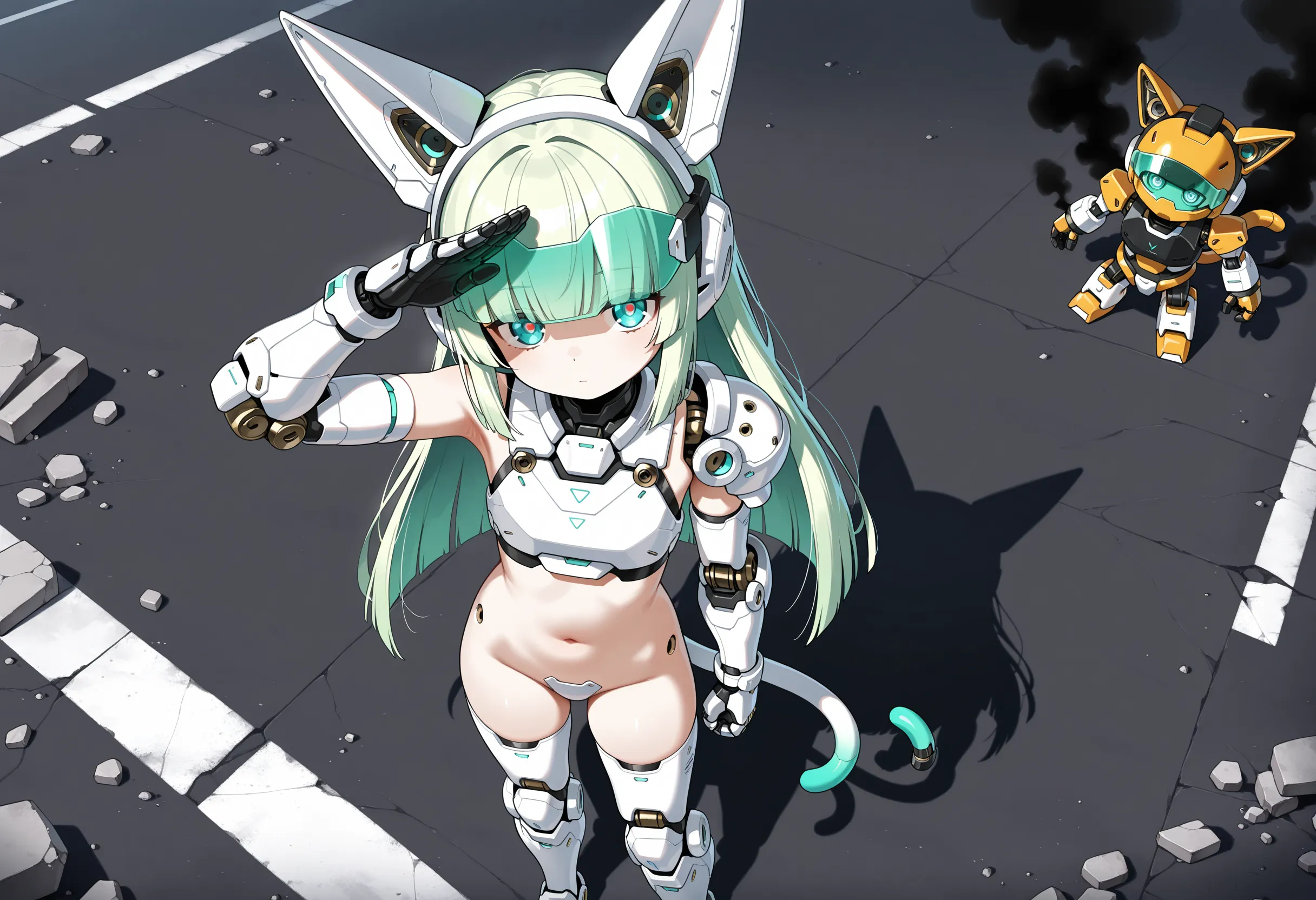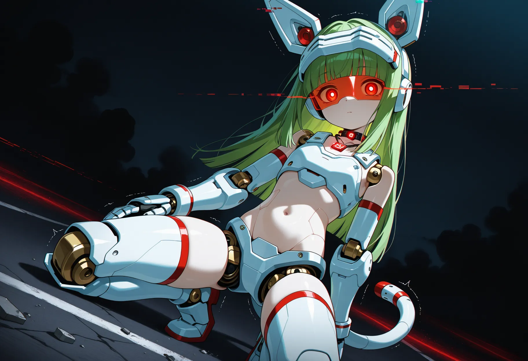 (mechanical visor:1.3), (mechanical cat tail:1.2), visor down,