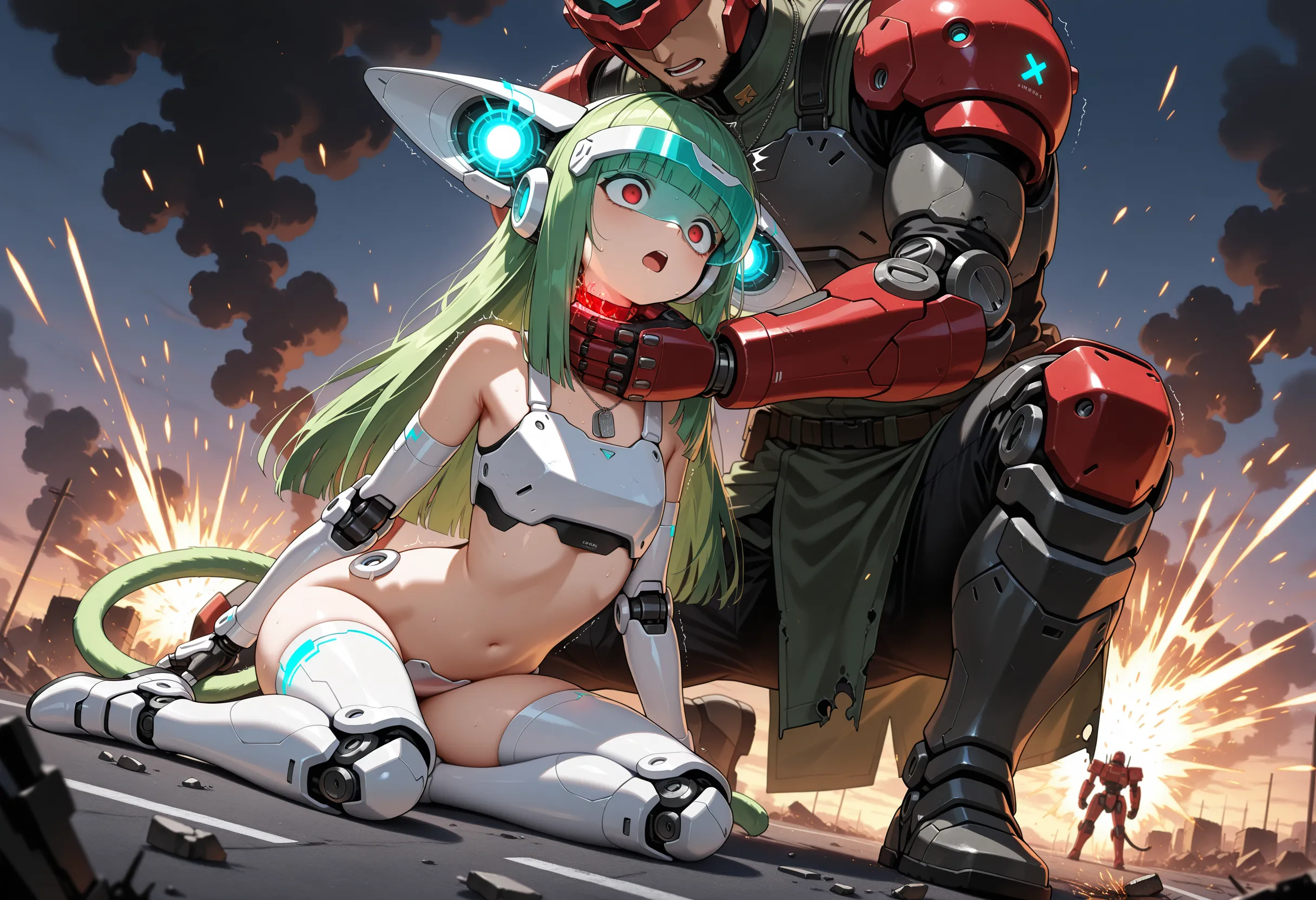 (large knee armor, mechanical thighhighs:1.2),