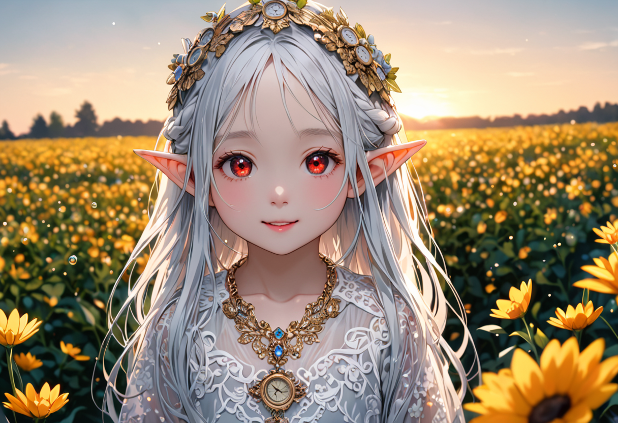 Elf Guardian of Time in the Golden Flower Field