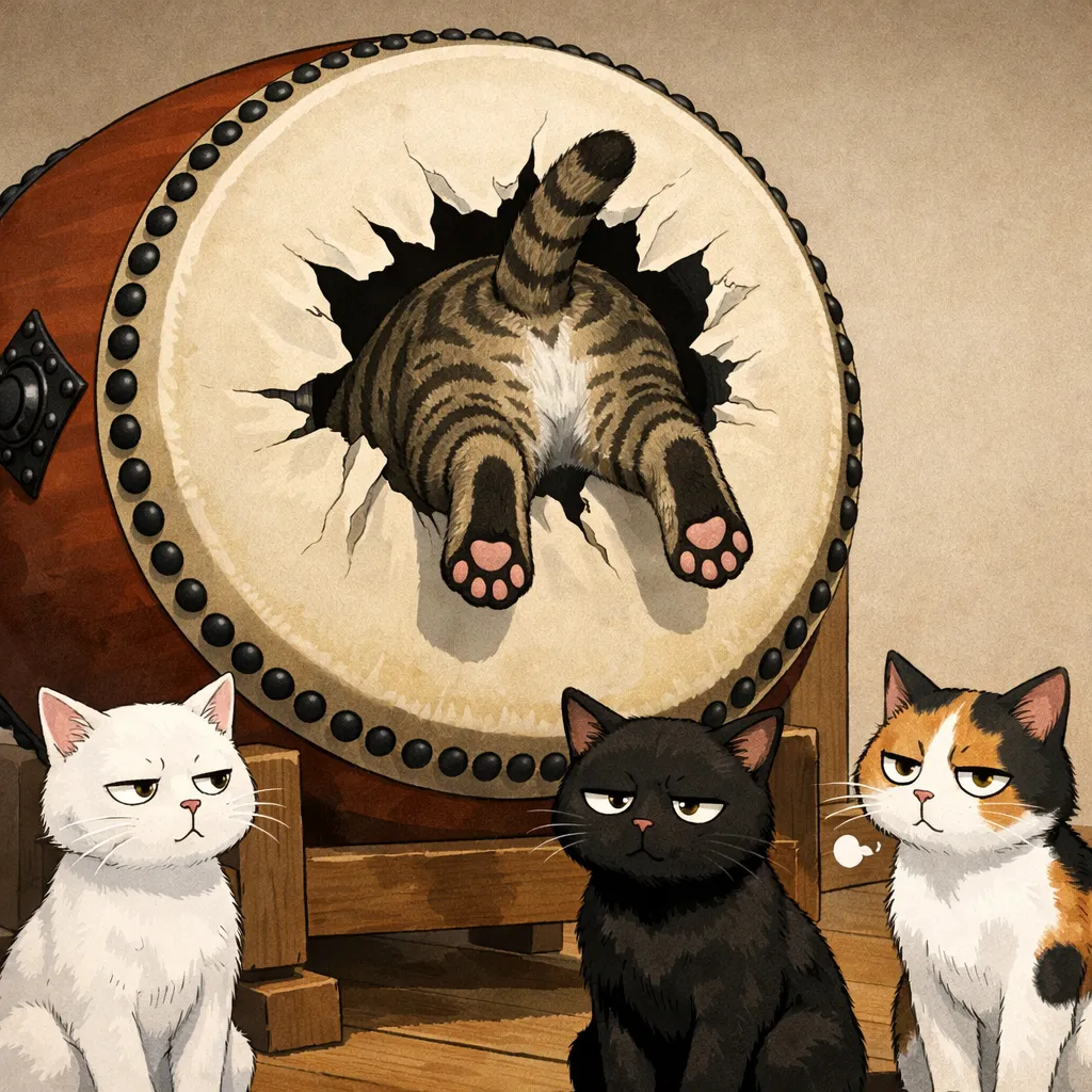 太鼓を叩こうと思ったら破けたにゃー 😆