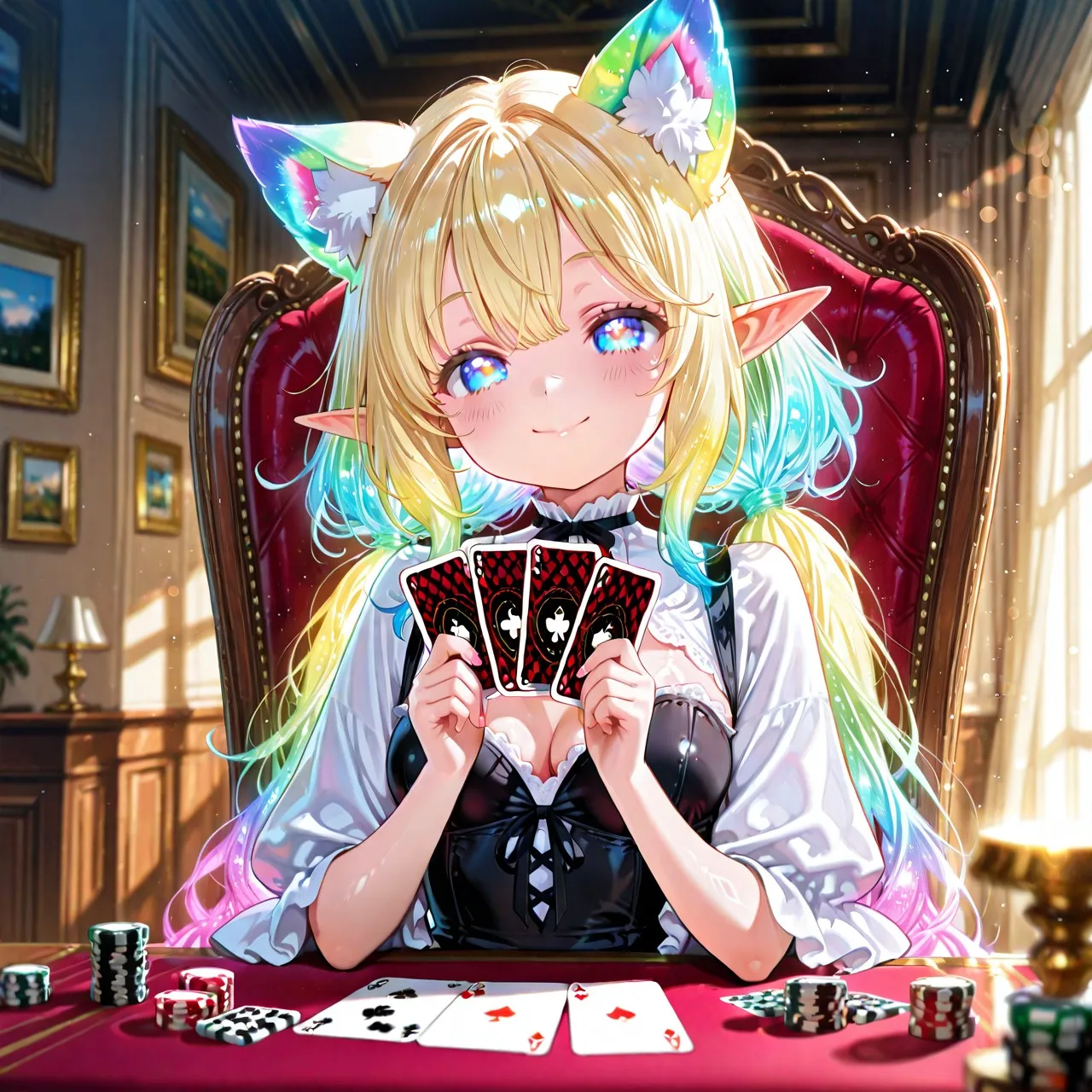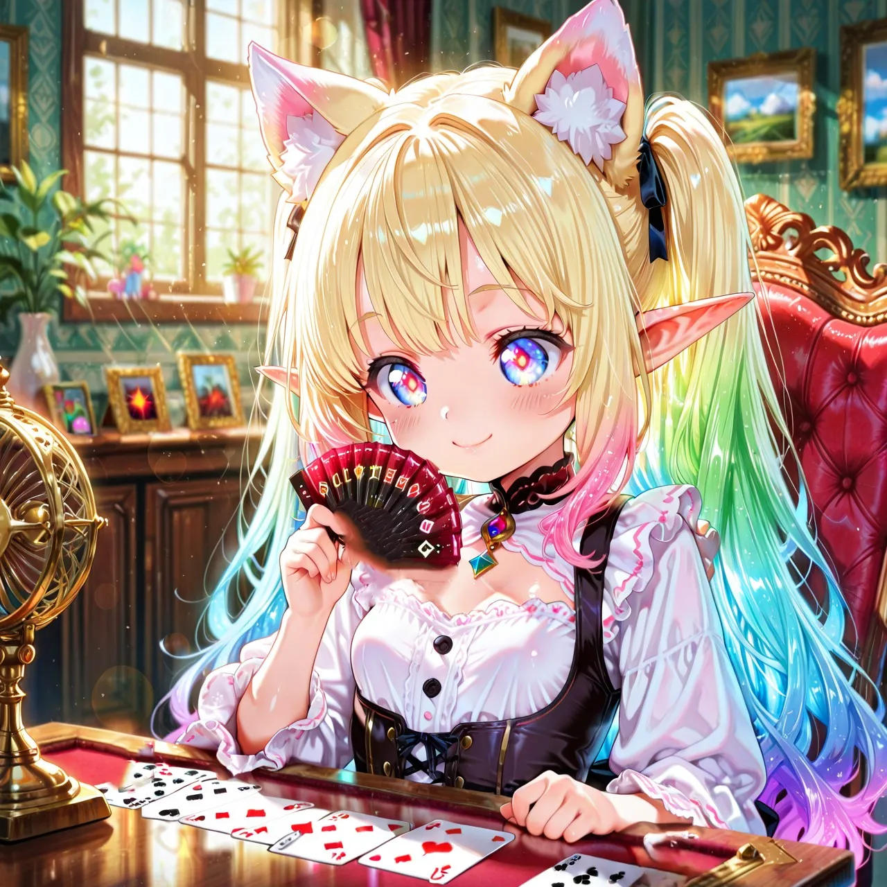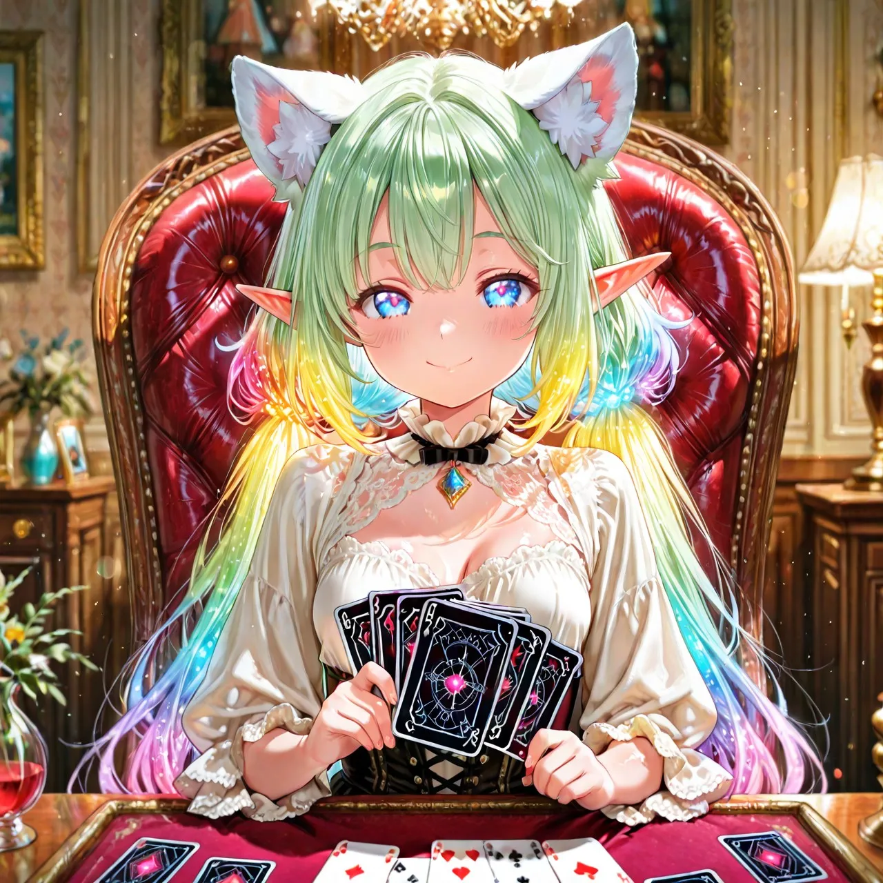 3枚)トランプとケモ耳エルフさん